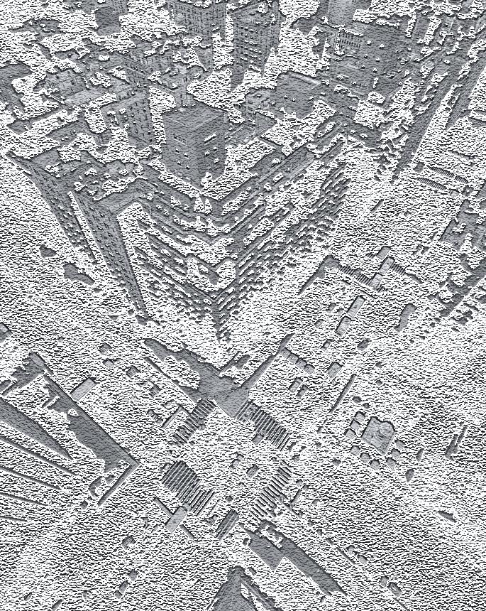 Large scale. In peri-urban areas, larger buildings, blocks, and wide roads. Less detail,