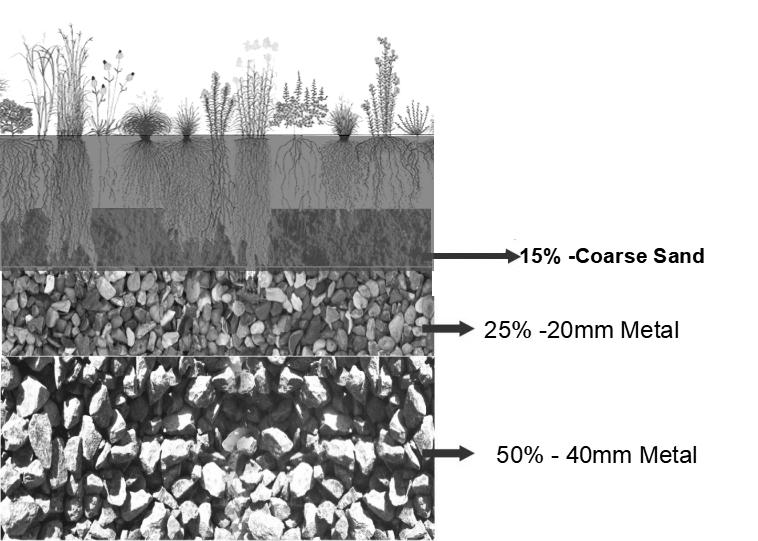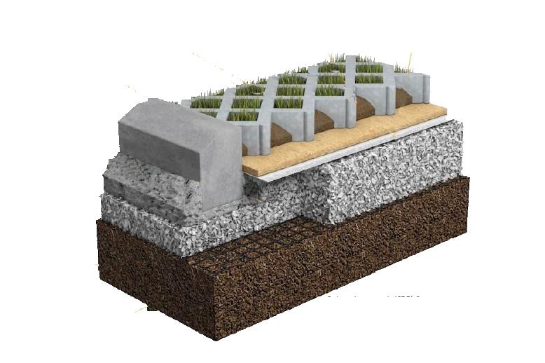 Park area as a buffer space. Permeable grass paver are used to percolate surface run-offs
