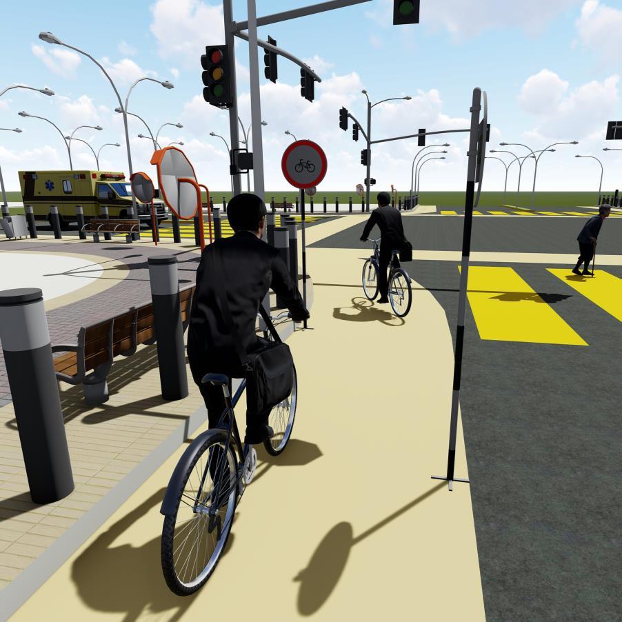 Presence of 24 hour open urban elements. Provision of bike lane, bus lane, sidewalk, safe separation buffers