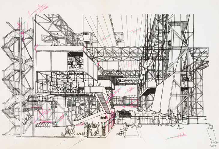 Fig. 1 Cedric Price, Fun Palace: section showing potential use of interior spaces c. 1963. Cedric Price Archives, Canadian Centre for Architecture,
