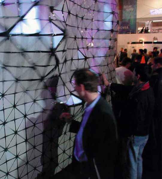 Driven by a bed of 896 pneumatic pistons, the dynamic ‘terrains’ are generated as real-time calculations.”