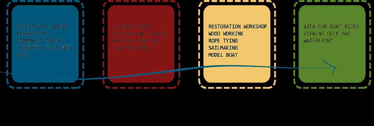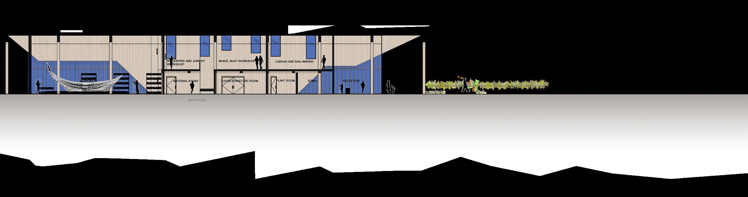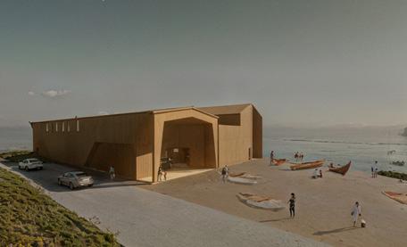 The centre provides flexible interior spaces for exhibitions, community workshops, and educational programmes, creating a dynamic interface between heritage and modern use. The material palette, dominated by timber and aluminium, was chosen for durability, low maintenance, and reduced environmental impact. Passive design strategies and highperformance insulation contribute to low operational energy demands, aligning with carbon reduction targets. As both a tribute to Stromness’s boatbuilding history and a forwardlooking model of sustainable architecture, the Boat Heritage Centre balances cultural storytelling with environmental responsibility, positioning itself as a meaningful addition to the local landscape and community.