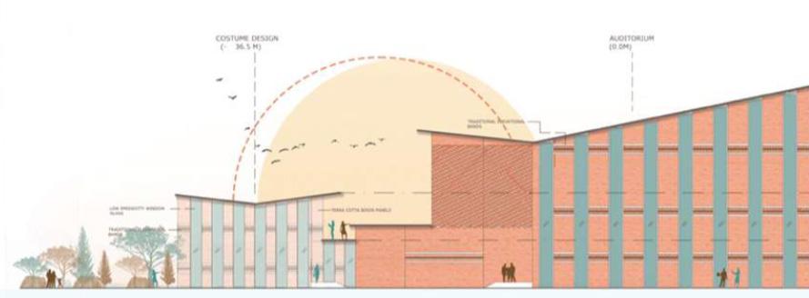 At its core, the project seeks to bridge the gap between tradition and modernity by reintroducing Natya Sangeet to newer generations and audiences unfamiliar with its depth. Through thoughtful spatial programming and contextual design, the facility will provide immersive experiences that nurture artistic growth while fostering community engagement.