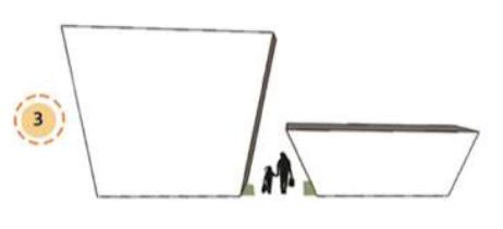 Decreasing the height of one of the building to show the change in scale and proportion with respect to human scale