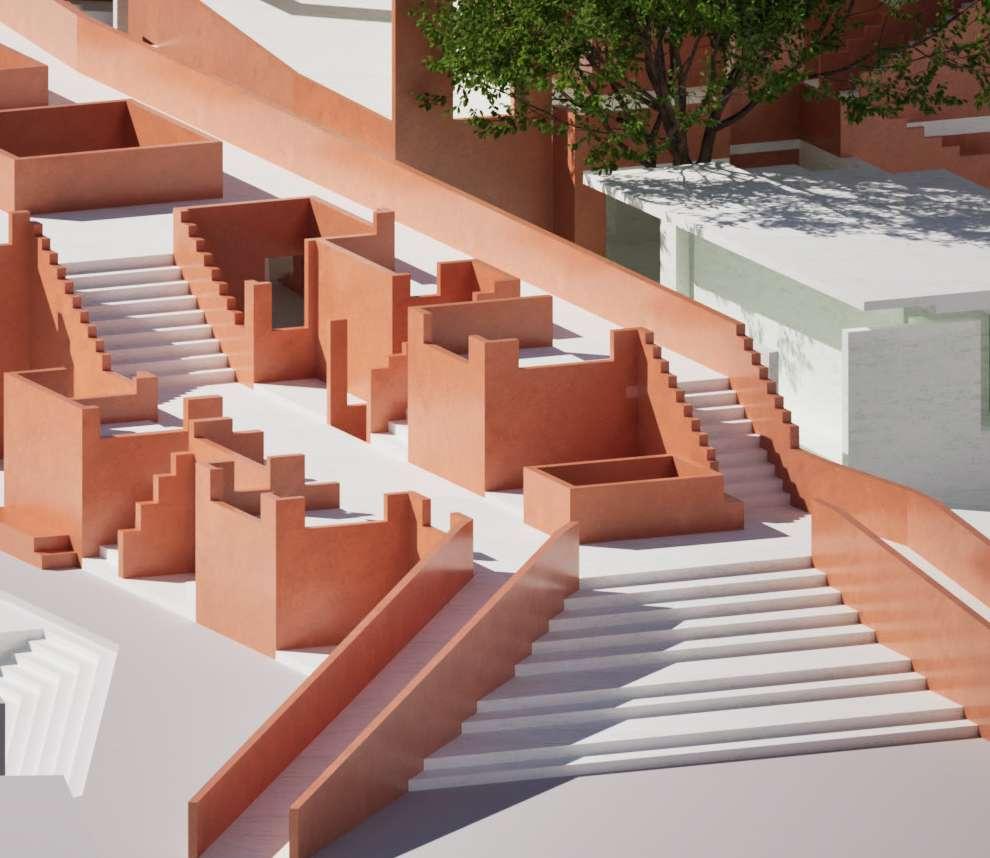 This ghat typology opens directly toward the lake in a market integrated cascade, where each step or level transforms into a usable pocket.
