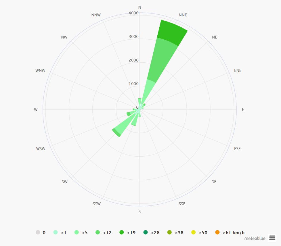 The average wind speeds vary around 12kmph.