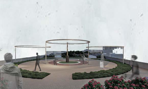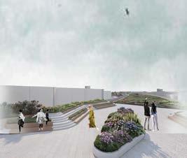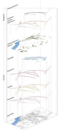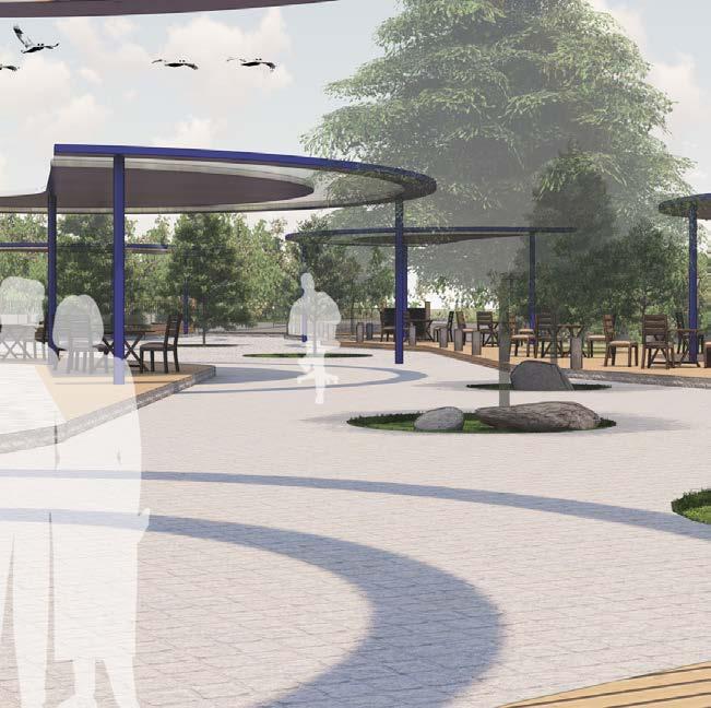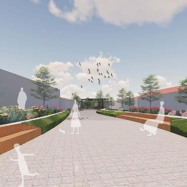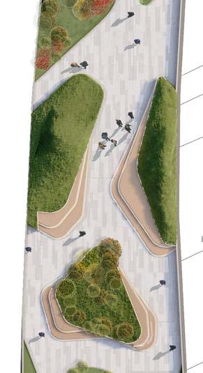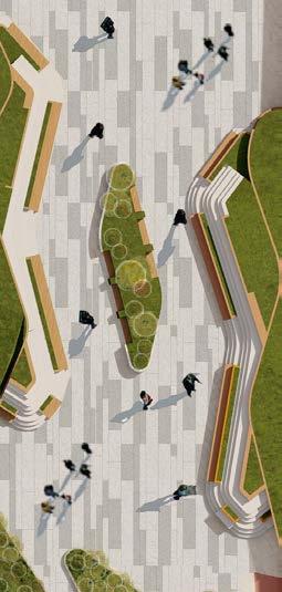 Designed: Landscape in the centre along with furniture and pedestrians on one side and cyclists on the other side