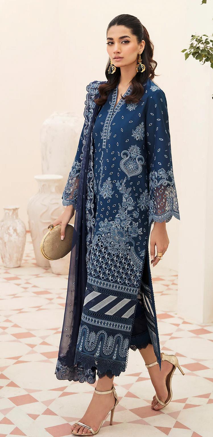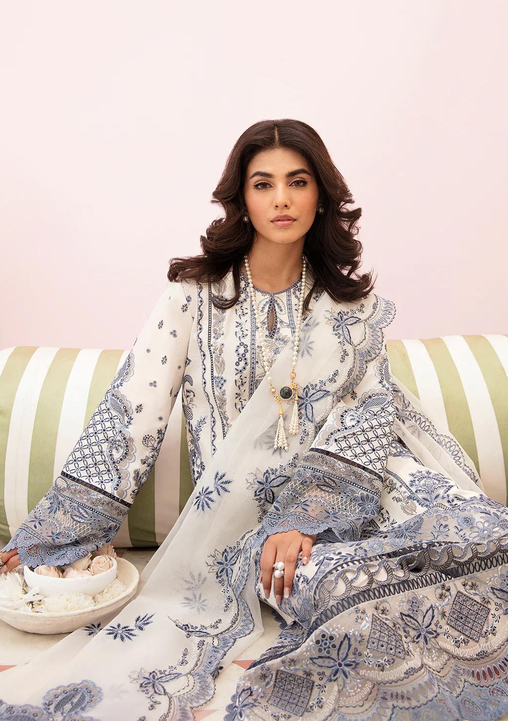 Aisha's search led her to the renowned Afrozeh boutique, a treasure trove of exquisite Pakistani attire. As she stepped inside, her eyes widened in awe at the sight of the resplendent collection. Her gaze was immediately drawn to a breathtaking Chikankari Festive Pakistani Lawn Suit from the latest 2023 collection. It was a masterpiece of intricate embroidery, delicate lacework, and ethereal charm.