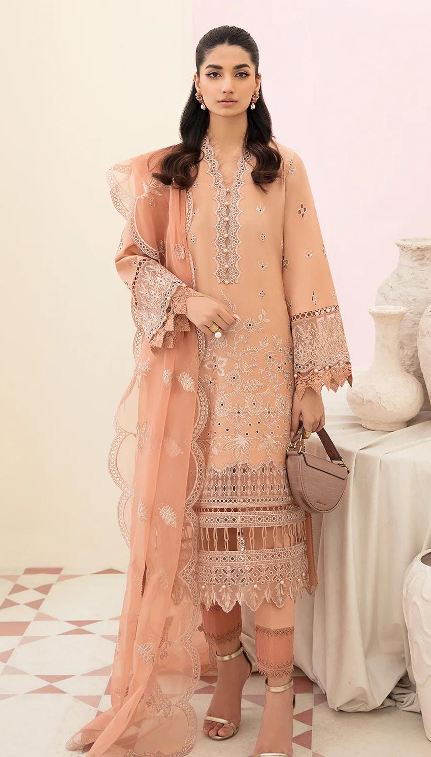 light orange pakistani Lawn Suits