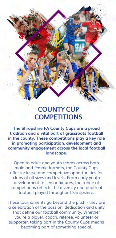 Grassrootsfootballcontinuestothrive,providing opportunitiesforeveryonetogetinvolved,fromplayers, volunteers,coachesandrefereestoclubsandyoung leadersshapingtheircommunities.Everystoryreinforces thepositiveimpactfootballmakesinShropshire,and2026 willseeusamplifythatimpactevenfurther.