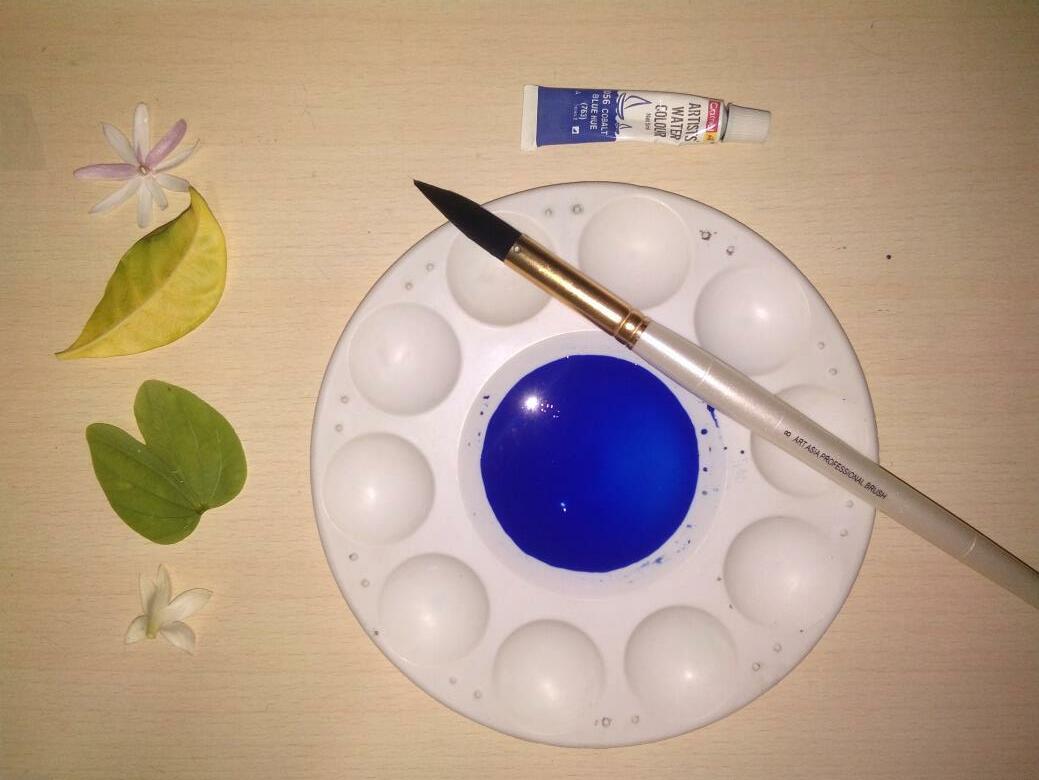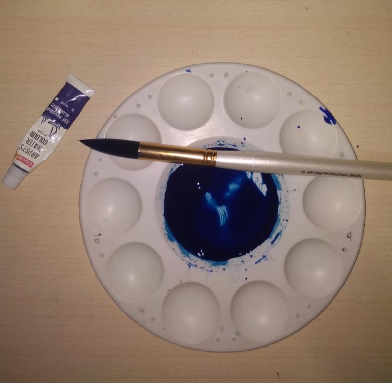 Prepare lighter shade of blue for water color Start by giving a lighter wash of paint