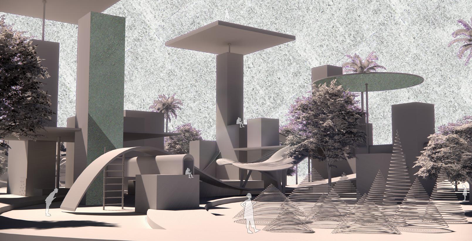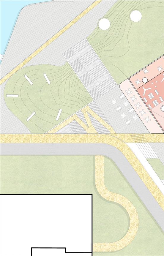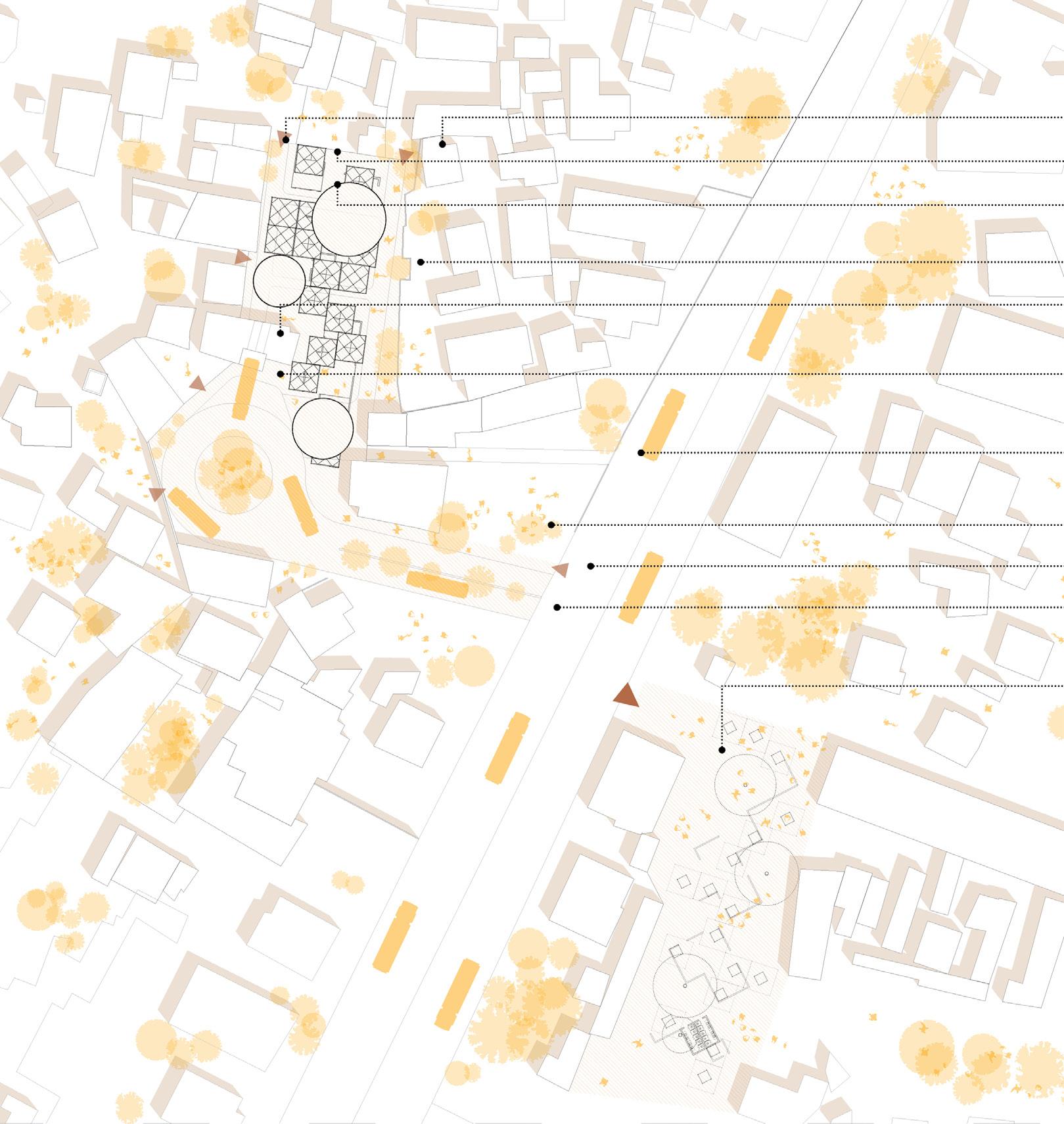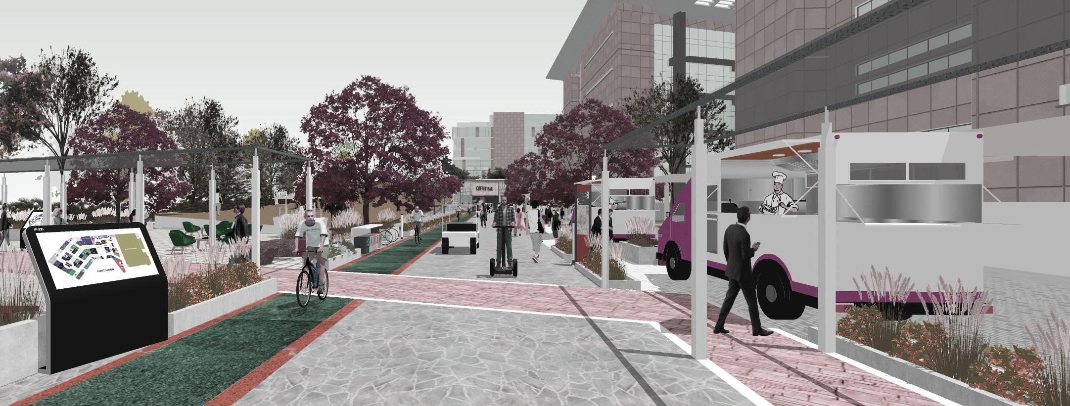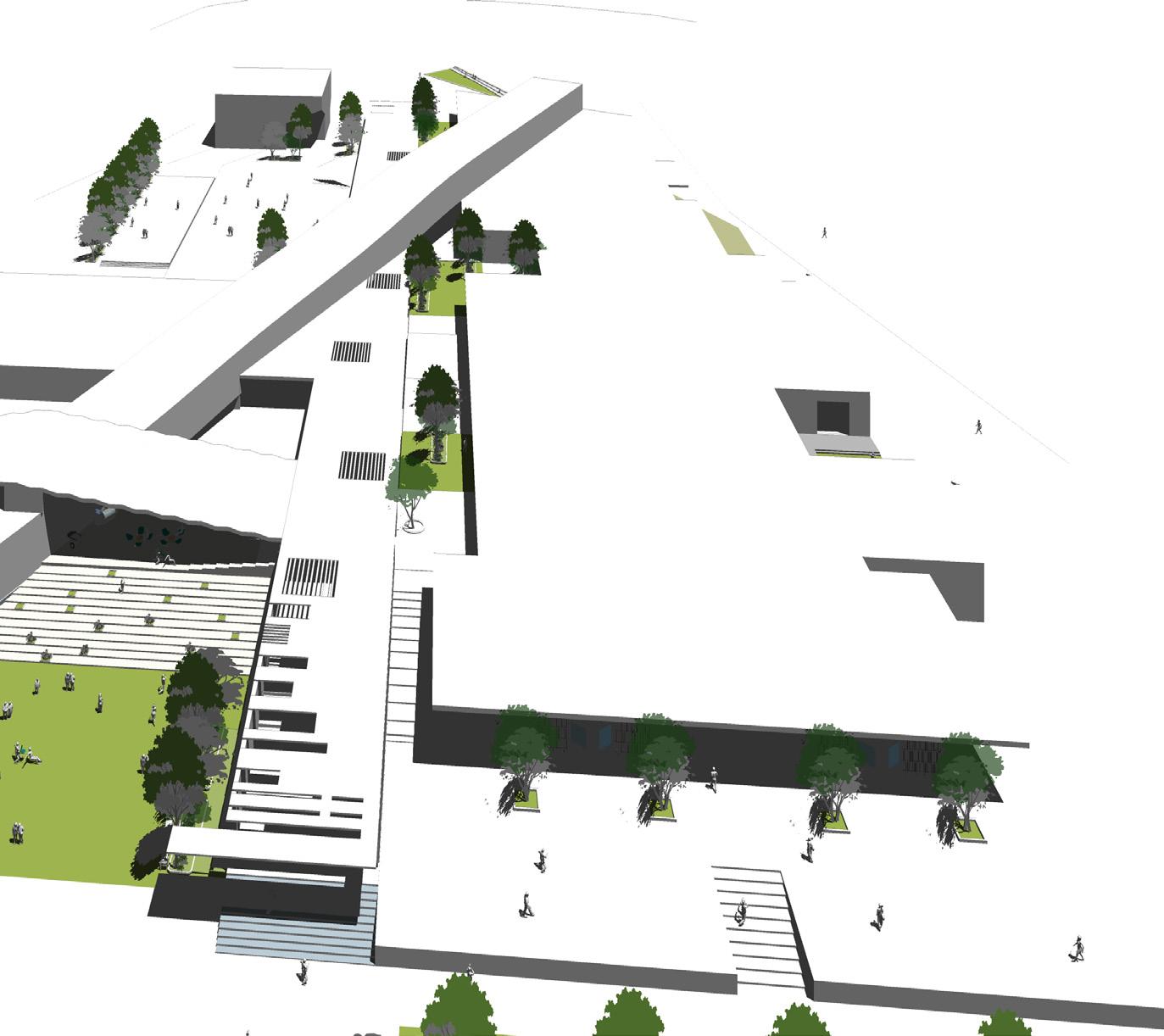 Scope : to reorganize the pedestrian circulation and introduce and enhace the soft mobility corridor with activities and amenities that runs throughout the campus