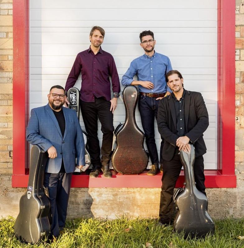 Texas Guitar Quartet brought a fiery energy as part of the 2021–2022 CAM Artist Series. School of Music faculty member Alejandro Montiel was excited to introduce a mix of
