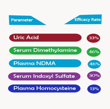 Reduces systemic circulation of DMA, NDMA, p-Cresol, Indoles and Phosphate