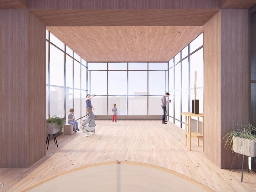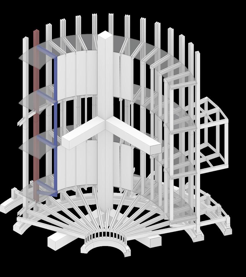 The Timber Tower, a sculptural wooden structure, is envisioned as a spatial & experiential connection between residential life and the monumental language of industrial landscapes. Situated on the Buffalo River, directly across from Silo City, the tower functions not only as an architectural landmark but also as a place for reflection, offering a vertical promenade through the layered history of the built environment. The ascent evokes the slow, reverent procession through a Buffalo cathedral an experience shaped by rhythm, shadow, and sudden light. In this way, the tower becomes not just an observation point, but a vessel for stillness, perspective, and awe.