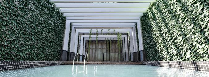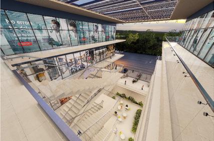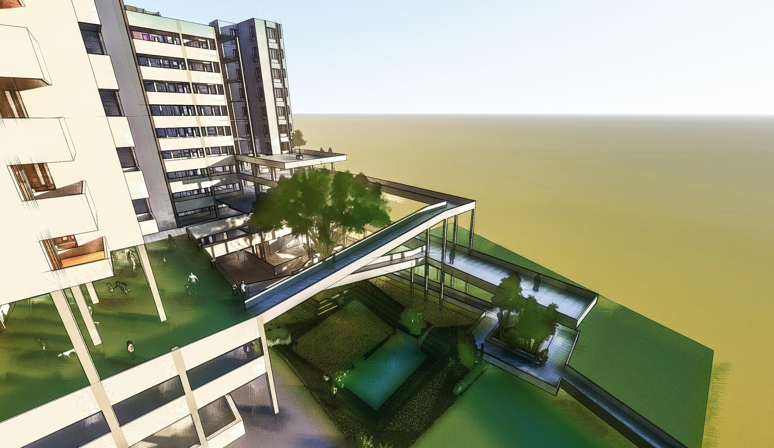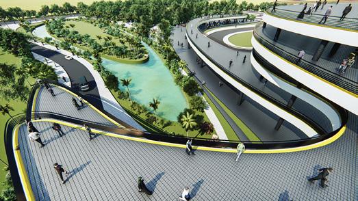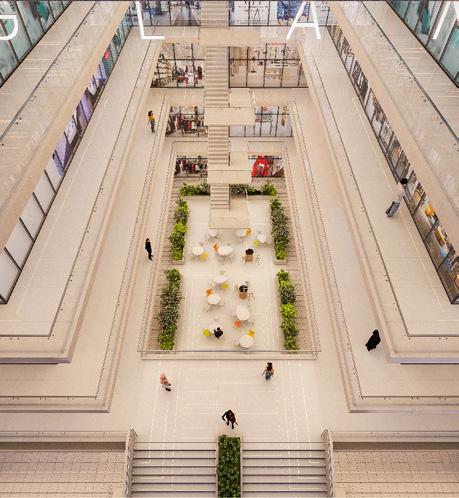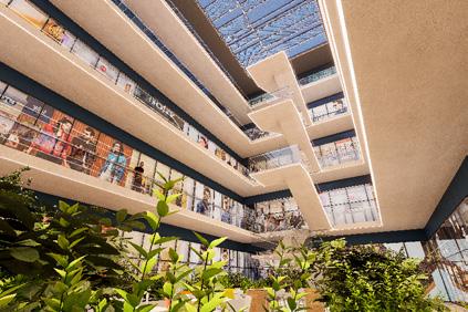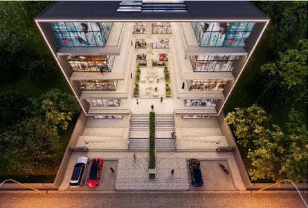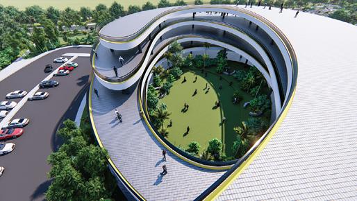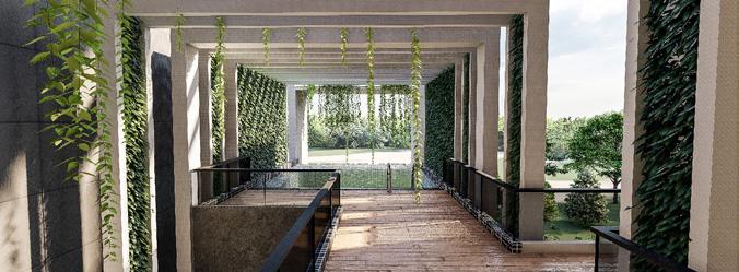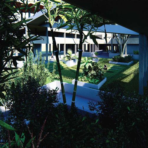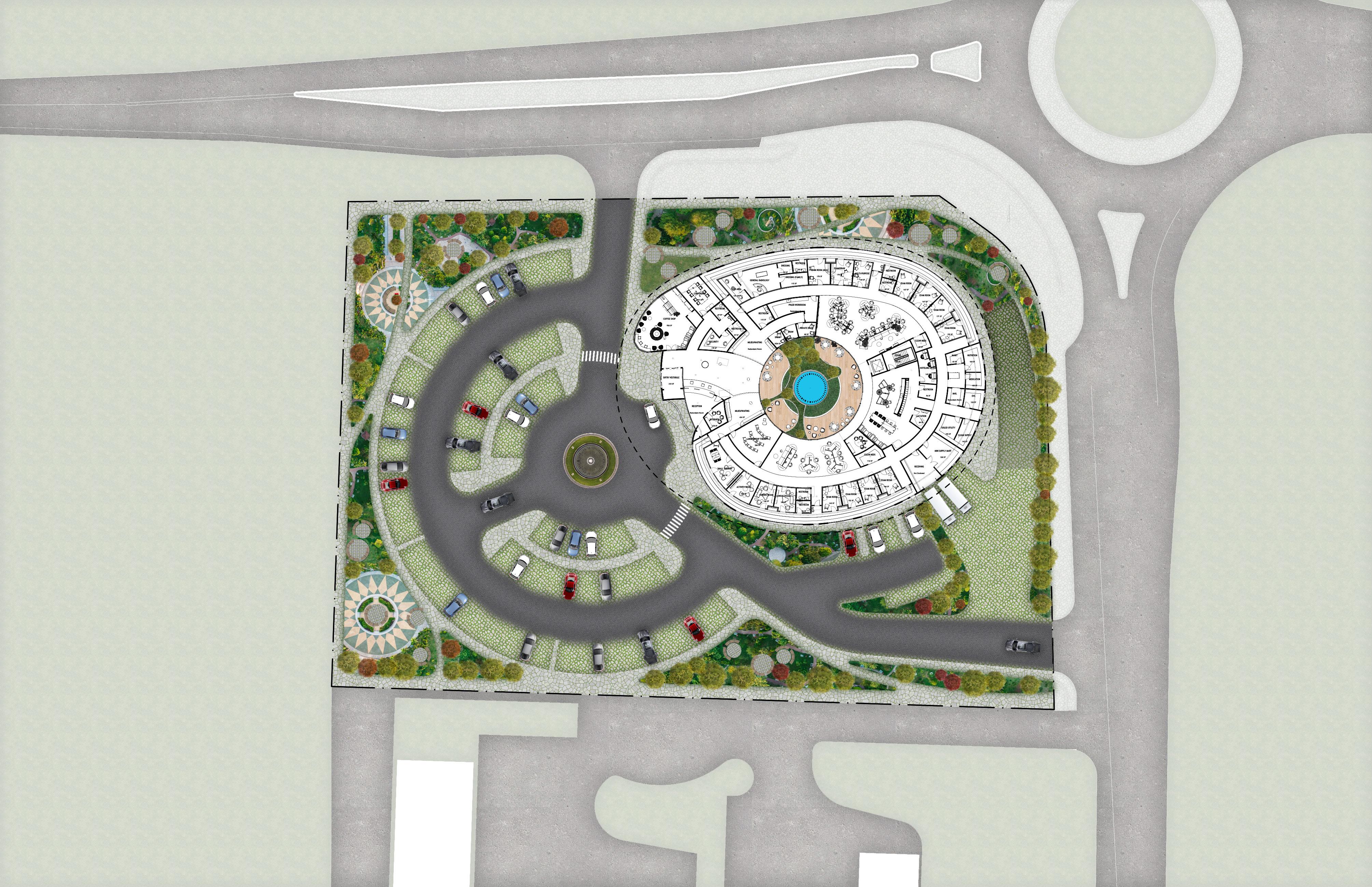 COURTYARD SURROUNDED BY WALKWAY RAMP LOOP FOR PHYSICAL ACTIVITIES DRIVEN HEALTHY SOCIETY