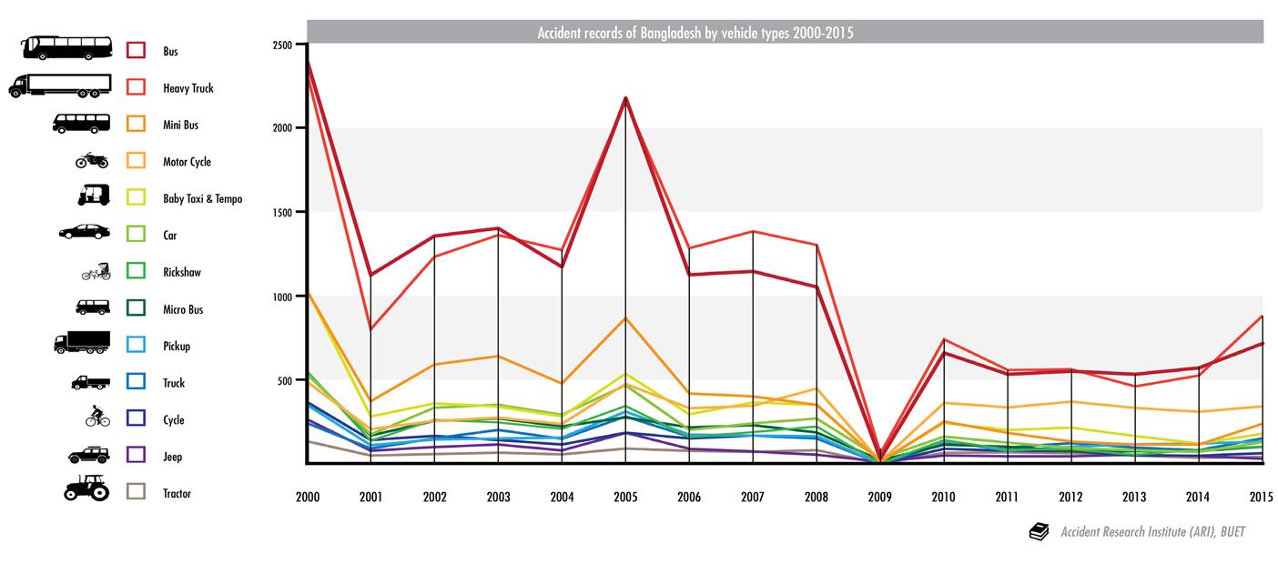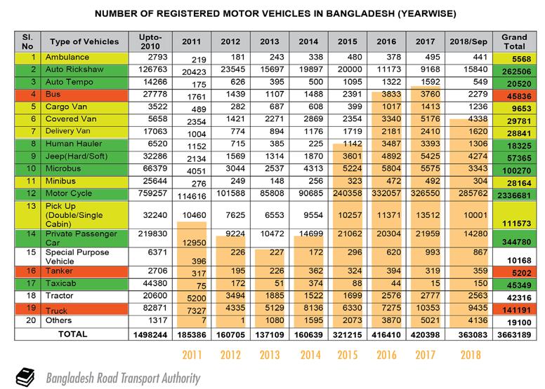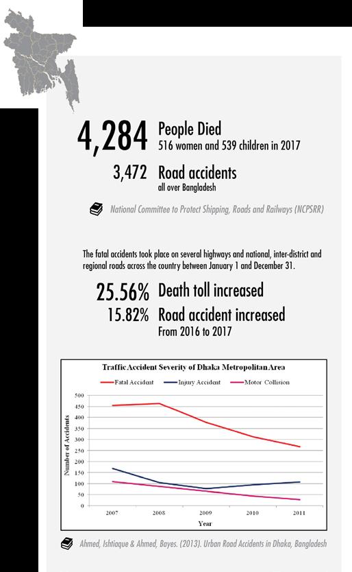 As per the estimation by the World Health Organization, over 21,000 deaths occurred from road crashes in Bangladesh in 2015 with road traffic crashes equating to an estimated 1.6 percent loss to the nation's GDP. The number of repor ted traffic fatalities per 100,000 population was 2.1048 in Bangladesh in 2013 when there were 3,296 repor ted traffic fatalities and a population of 156,594,962. No matter how safe the vehicles are or the vigilance of the general people, road safety cannot be achieved without the driver's training, skill, and the right attitude to drive safely. There is an exigency of training targeted towards in-ser vice commercial bus and truck drivers, the majority of whom have not been through institutional driving training. It is common in Bangladesh where such drivers receive their training through apprenticeship from another experienced but uncer tified driver. As a result, most of these drivers, although per forming in a professional capacity, are unaware of the many road safety rules and practices.