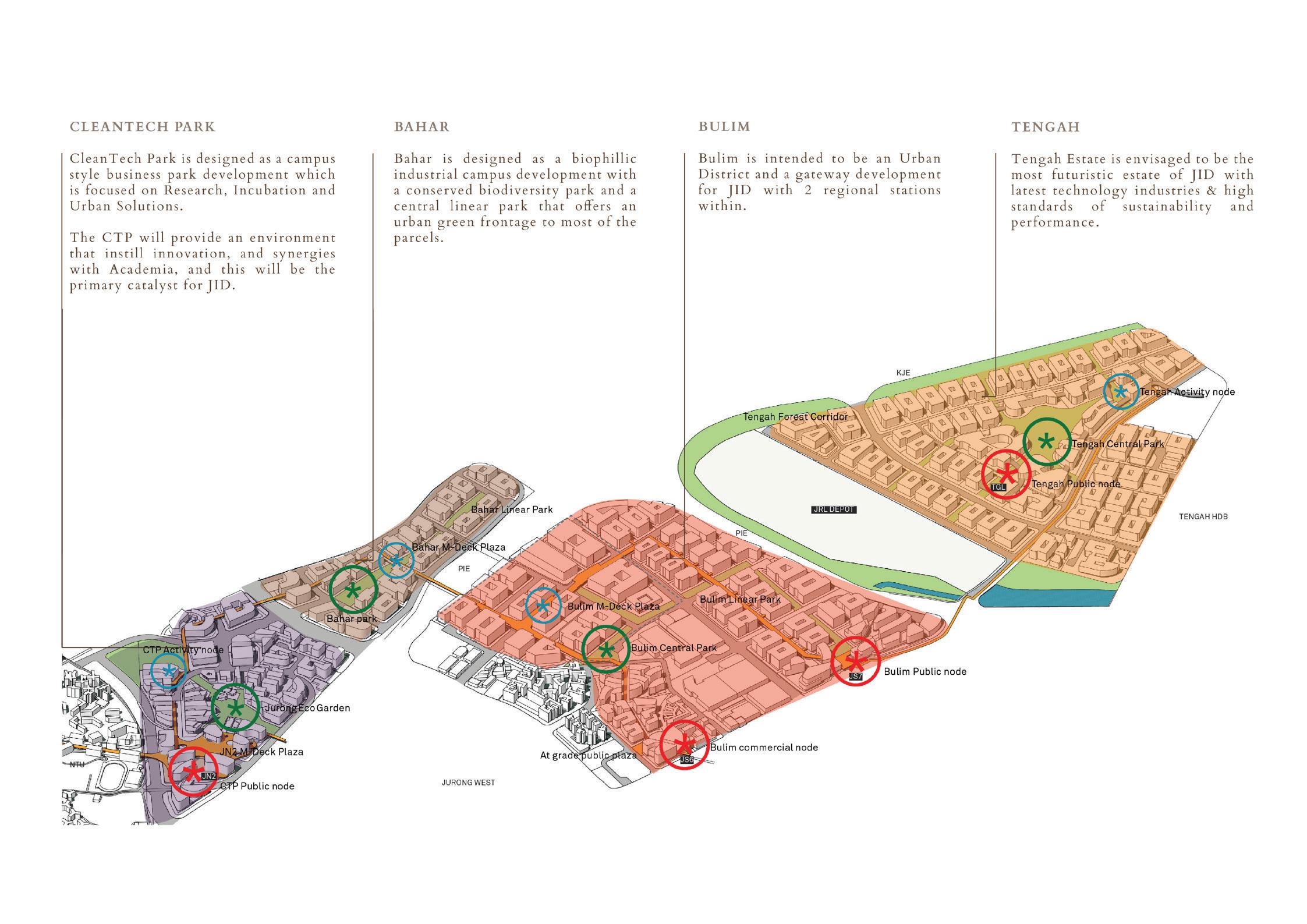 Jurong Lake District has been envisioned to be the second CBD of Singapore, in the efforts to bring more quality jobs, amenities, and recreational options closer to homes. JID is home to four distinct estates namely Cleantech Park, Bahar, Bulim and Tengah.