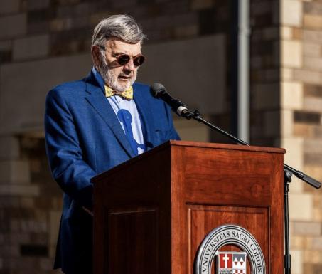 Dr. John Petillo, the President of Sacred Heart University, speaking at an on-campus event.
