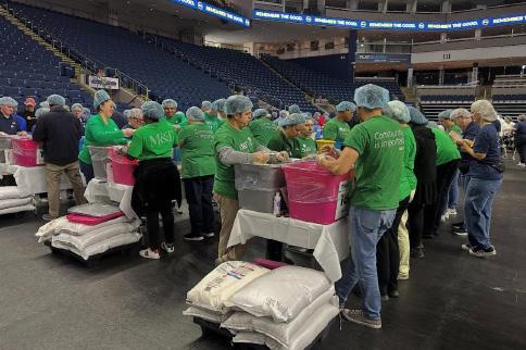 More than 400 volunteers came together for the inaugural Bridgeport Meal Pack Day for 9/11 at Total Mortgage Arena.