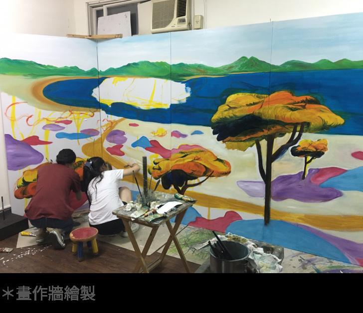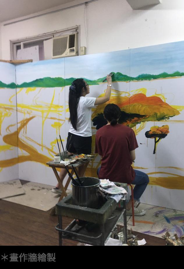 The entire painting wall is composed of eight 150*80 cm canvases. The principal design director of the painting wall is Hu Ciaoyin, and I am the painting staff. When talking about large-scale paintings, we should consider the overall coordination moreover whether it is visually correct. In this cooperation, I learned how to use rich colors to achieve the consistency of the picture and how to complete a very large-scale artistic creation in a limited time, the sequence of colors, the stacking and mixing of colors, and how to cooperate with others. Completing a complete painting is the result of learning in this case.