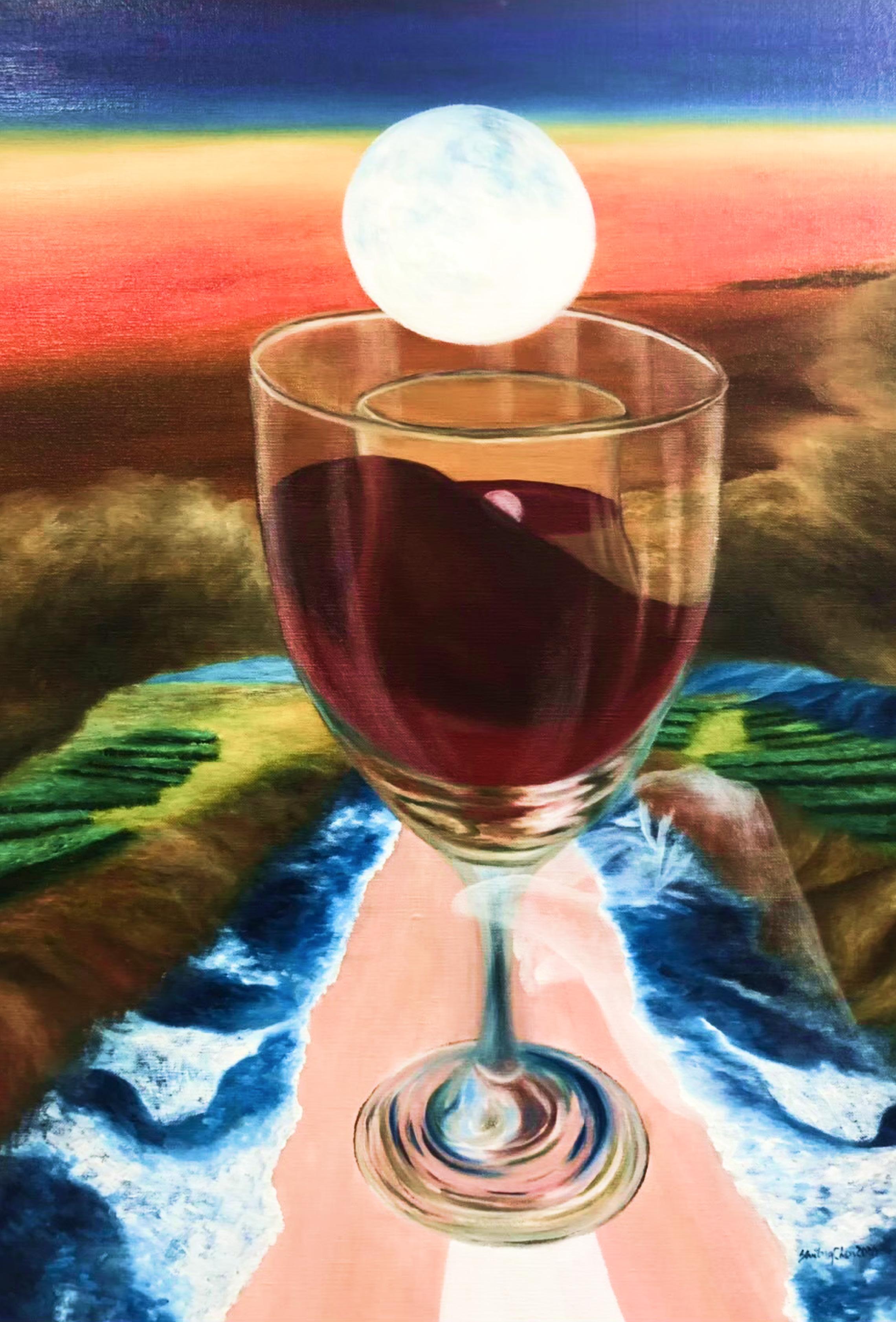 True and false, false and true, Holding a goblet in hand, The sun falls into the wine glass, A cup in a cup, layer upon layer, Confused in the eyes.