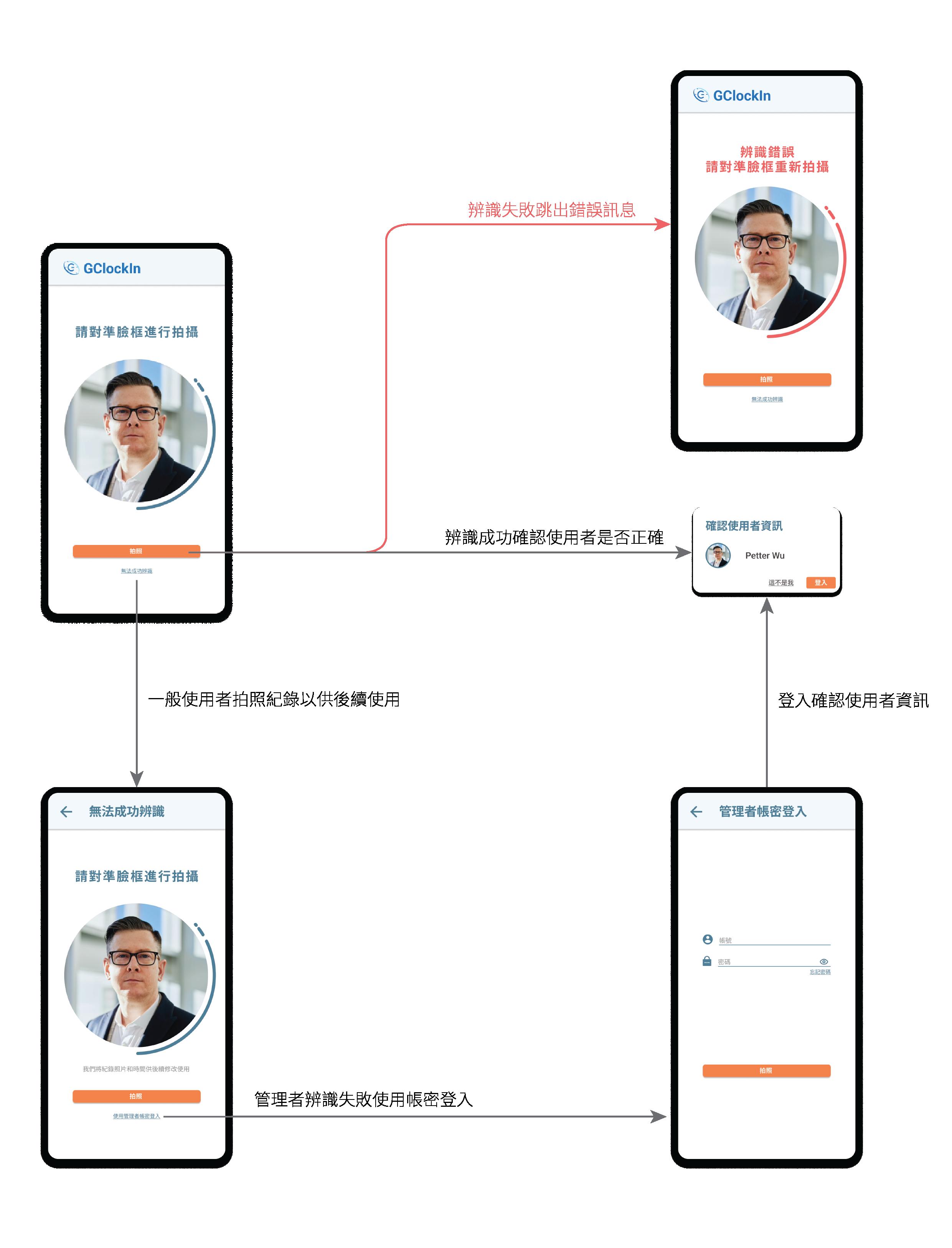 無論管理者或是一般使用者皆是使用臉部辨識的方式登入系統,具備最佳的防偽 效果,可以有效的防止代打卡以及最佳的個人資料保密效果。