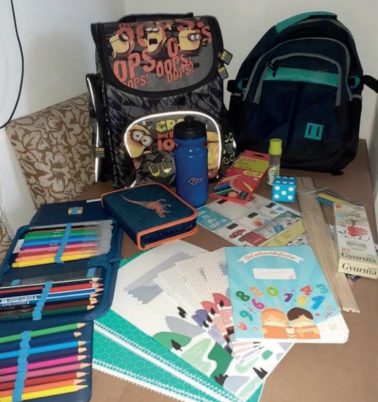 Kis elsőseink kb. 15-20 ezer forint értékű tanszercso magban részesültek: iskolatáska, a tanító néni kérésének megfelelően feltöltött tolltartó, hegyező, tornazsák, ku lacs, füzetek, gyurma, számolókorong, számolópálca, színesek, filcek kerültek az ajándékcsomagokba.