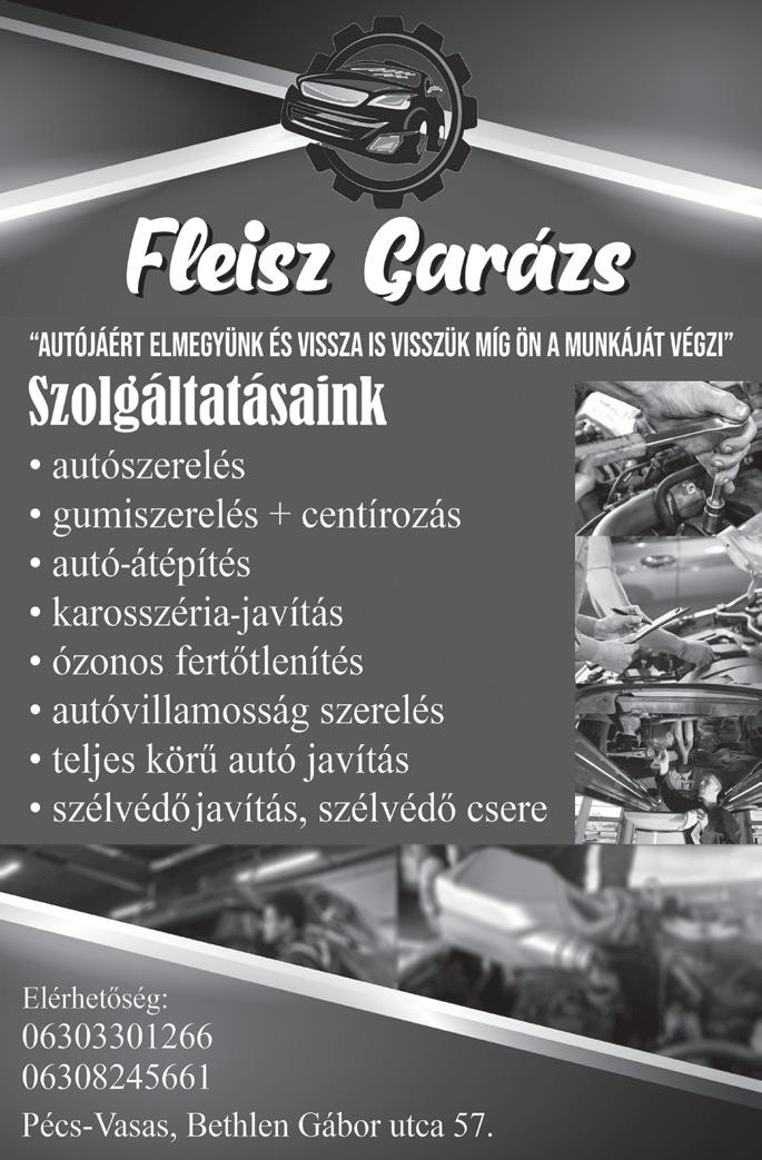 12 2021. október Sok Hírünk Van mIKlÓs fodrászAt Vasas, Szövetkezet u. 16. 06-30/452-4160 Női hajvágás (szárazon): 1500 Ft! Férfi hajvágás: 1500 Ft! Ikrausz Kft. Autószerviz, gumi szerviz, karosszériajavítás, diagnosztika, futóműállítás, műszaki vizsga. Pécs Siklósi út 2/A 06-20/410-2882 Somogy, Hird és Vasas közösségi lapja Eng.sz.: NMHH 02-02-0001254/2017 Kiadja: A VASASÉRT EGYESÜLET adószáma: 18305434-1-02 székhelye: Vasas, Bencze J. u. 6. Felelős kiadó: Berényi Zoltán egyesületi elnök Szerkesztik: a települések lakói és civil szervezetei Megjelenik: minden hónap első hetében,