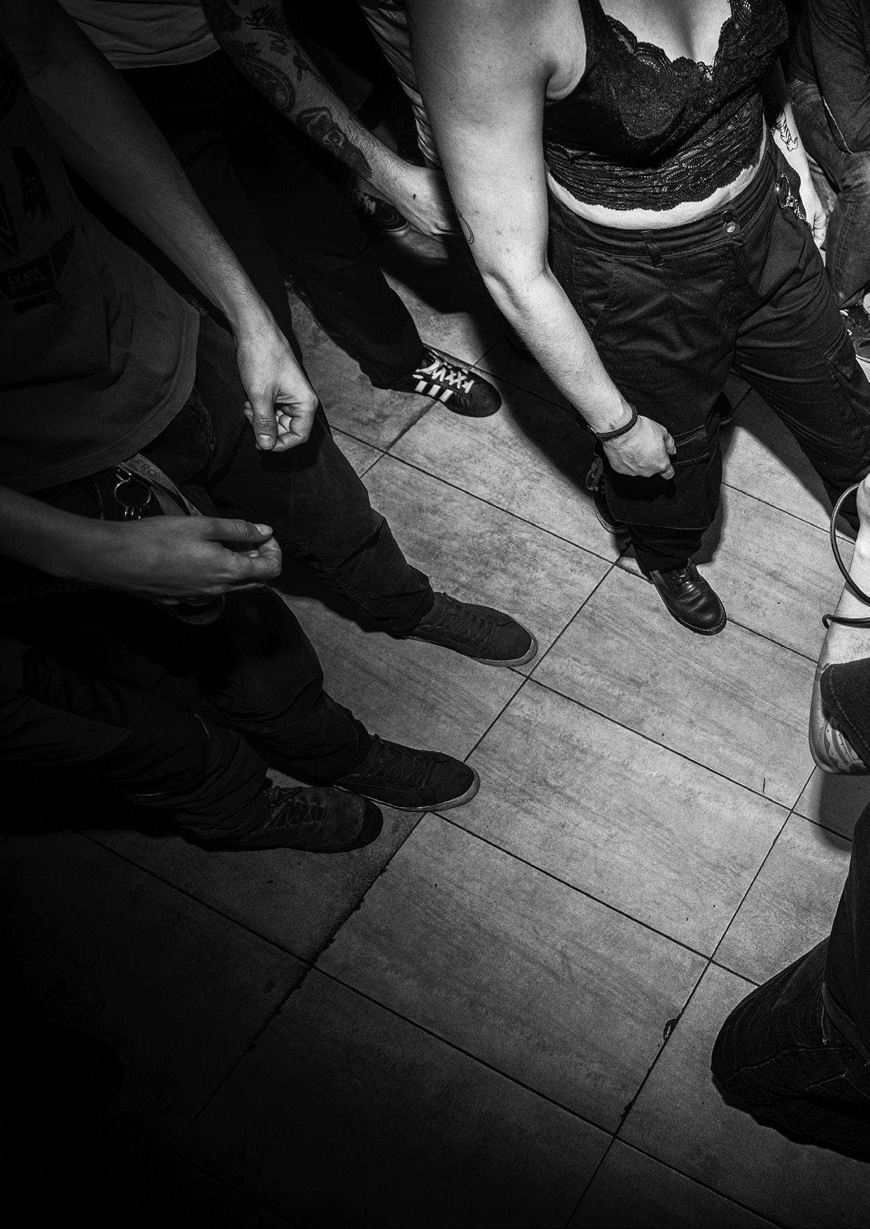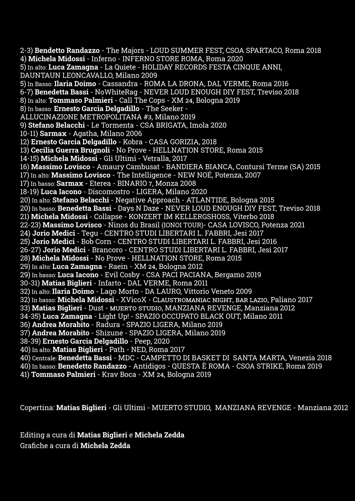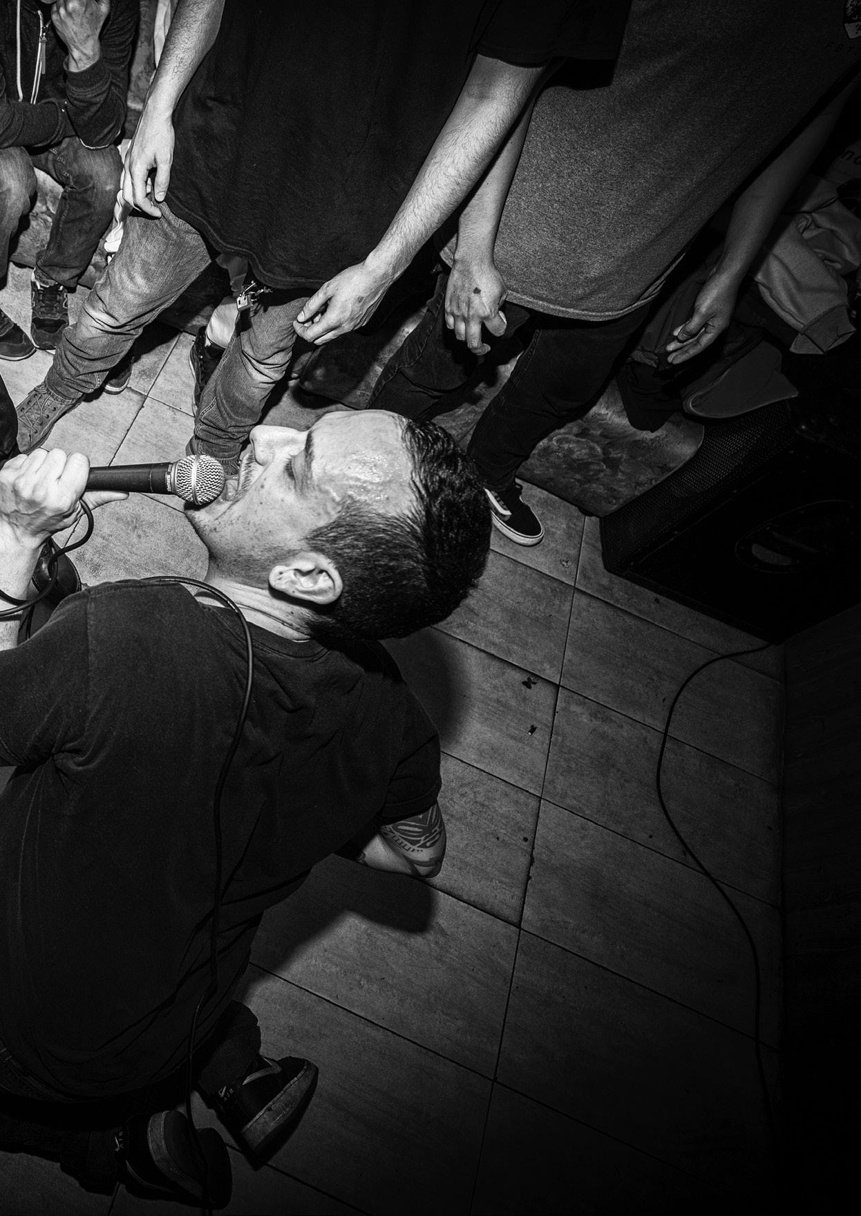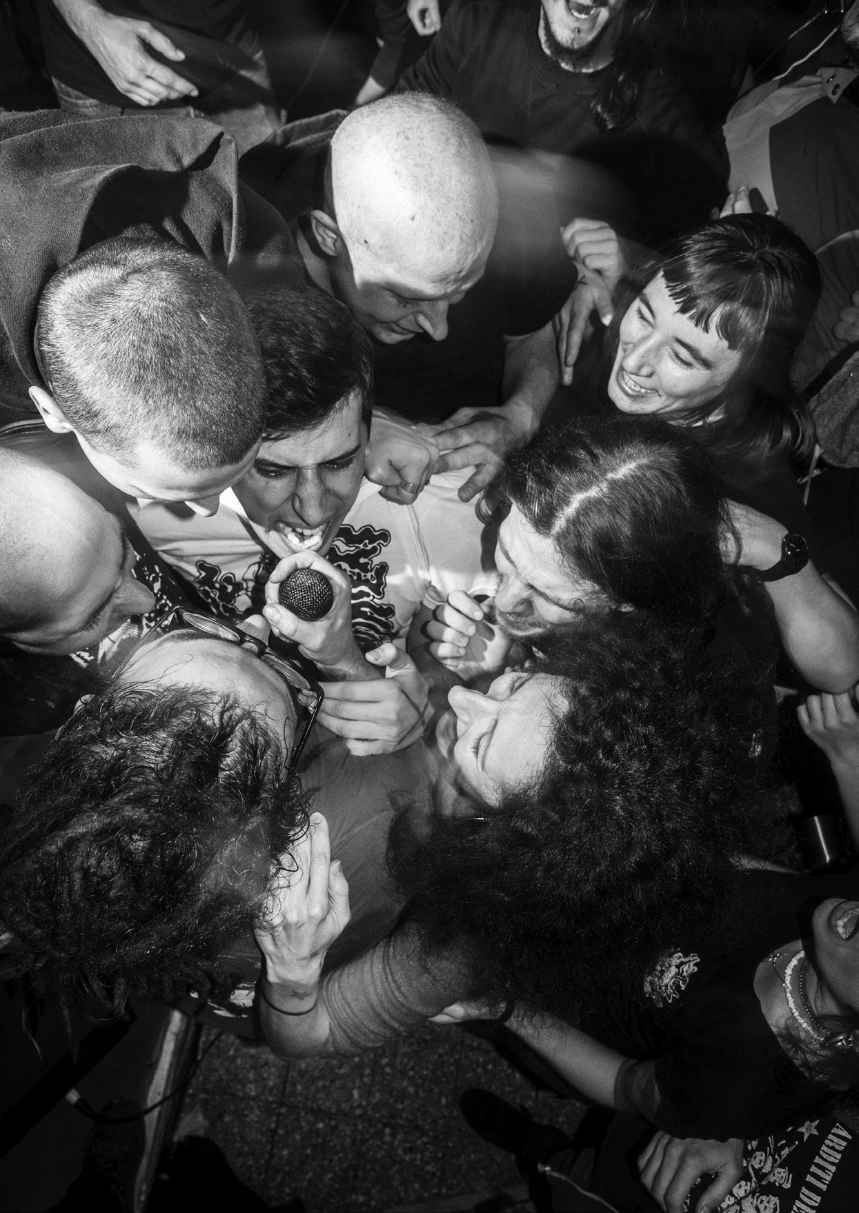 "NO STAGE è un approccio, uno status mentale prima che formale, legato a doppio filo con la mentalità DIY in cui a essere cruciale per la buona riuscita della serata non è solo la partecipazione collettiva, ma anche la disponibilità collettiva a scambiarsi i ruoli, mettersi in gioco e in discussione, senza che nessuno da nessun palco ti chiami a farlo, in un flusso naturale di sguardi che si trovano alla stessa altezza: quelli di chi canta, di chi suona, di chi balla, di chi poga. E, naturalmente, di chi fotografa."