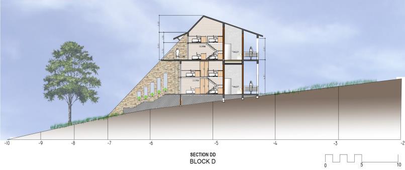 •The building has been designed to explore the contours on the site. Blocks have been placed in a manner that would make the user feel close to nature with views of the sea . Essence of contemporary Gokarna has been captured through this project.