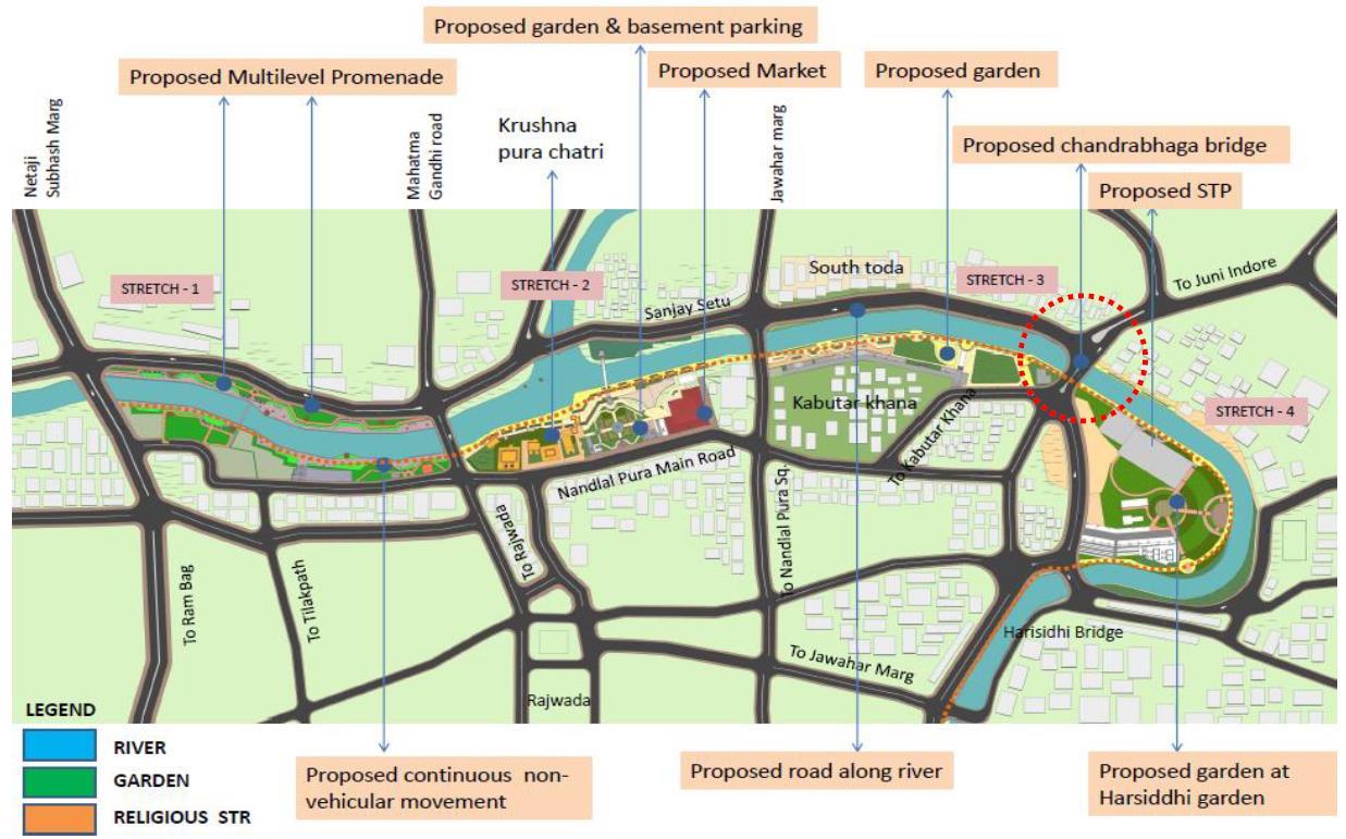4. A large chunk of Green Urban Park is proposed to be developed adjoining the river bank.