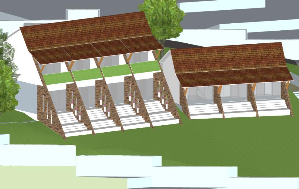 •The roof of the building forms an arc to form walls and it is from Fluorescent cement.