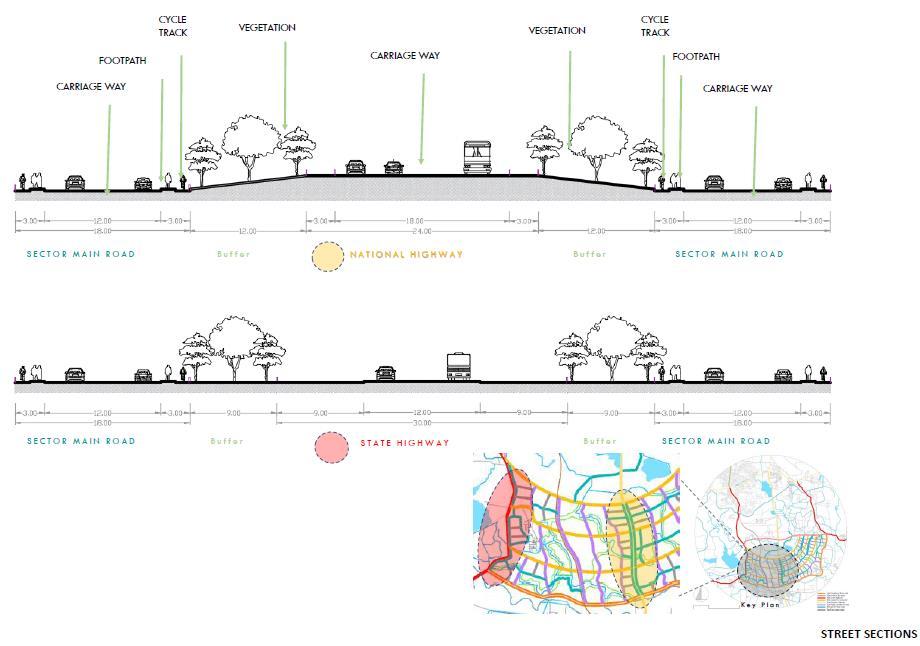 Development of roads and junctions as per street design guidelines ( integrated with underground ducting, smart signalization, surveillance and traffic management)
