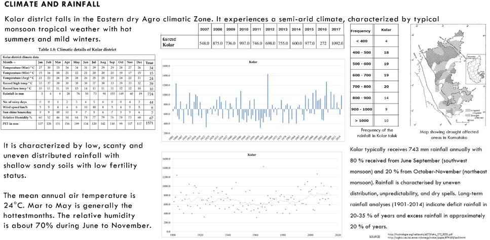 The city of Kolar depends on rainfall as the single source for water. Over the years the water shortage has increased due to urbanization and neglecting the need for water storage in the city. The problem has caused for government to come up with various initiatives depending on the external sources of water and creating large scale projects to meet the demand and manage the condition of drought in the city. The problem questions the future scenario of increasing demand on those resources and what would happen when the external sources get dry. This makes it important for the city to strive on it own a and manage the water efficiently .
