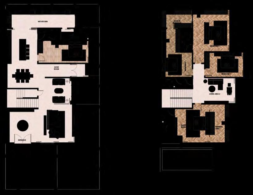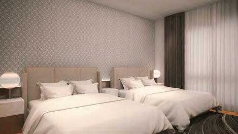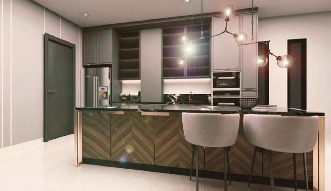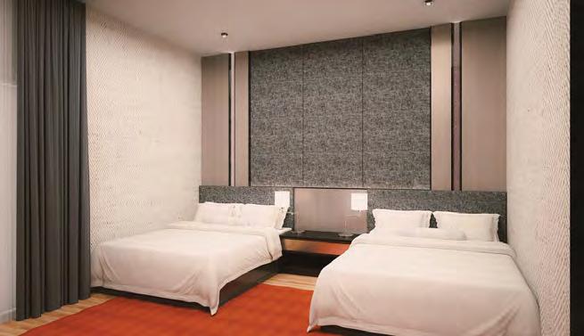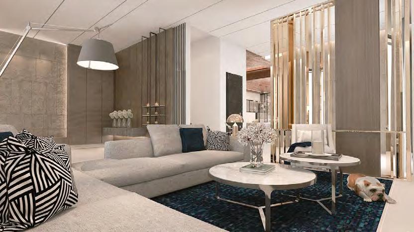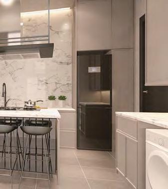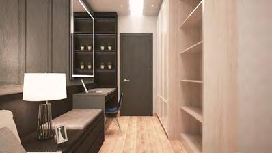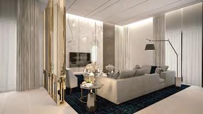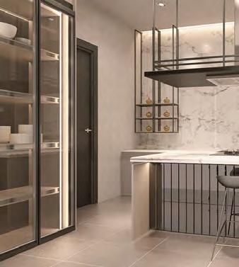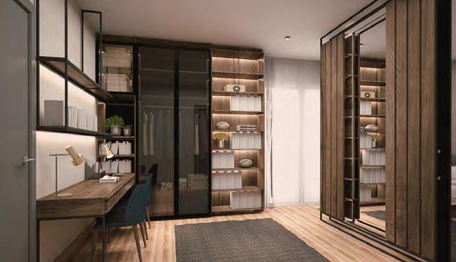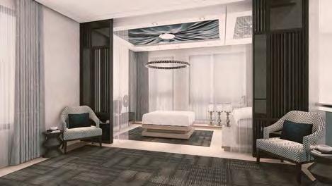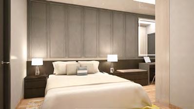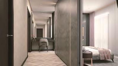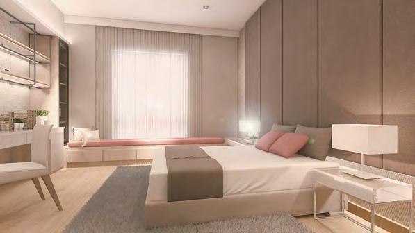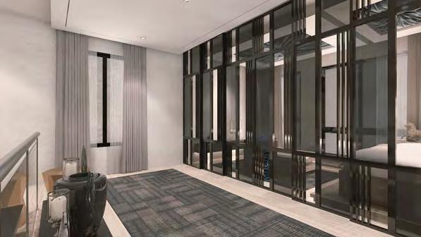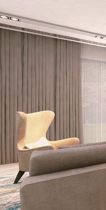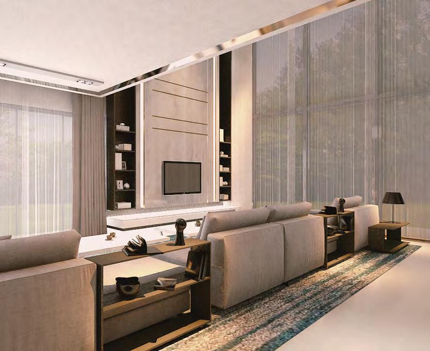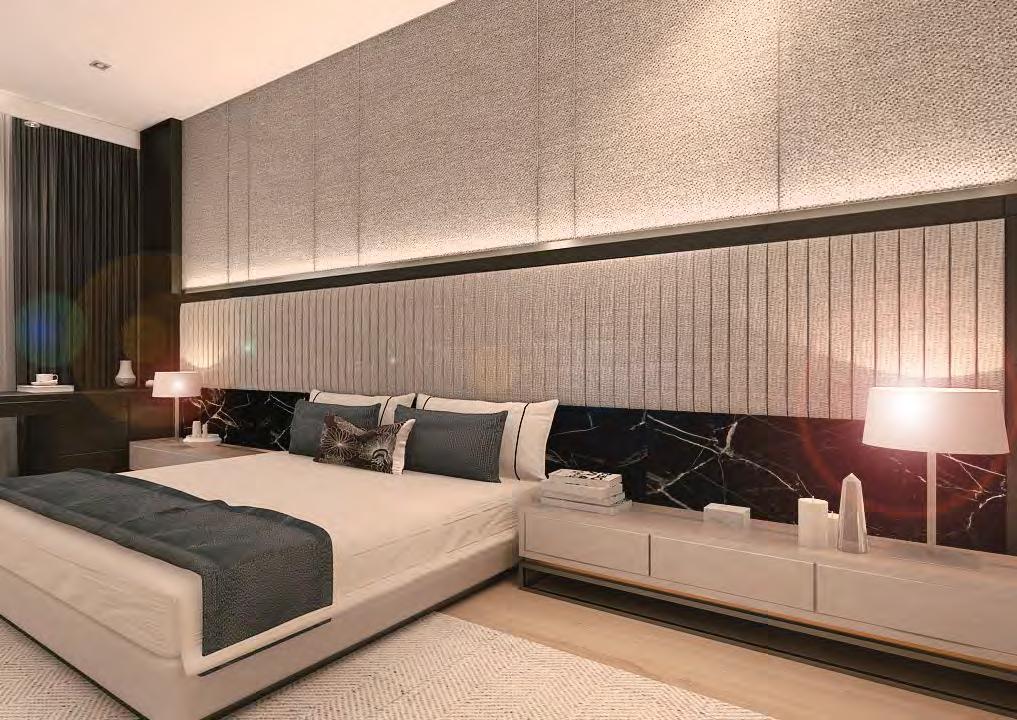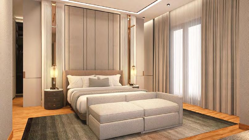 Beige colour scheme, fabric textures, wood patterns, metal and paints are selected for luxury at the same time keep simple.