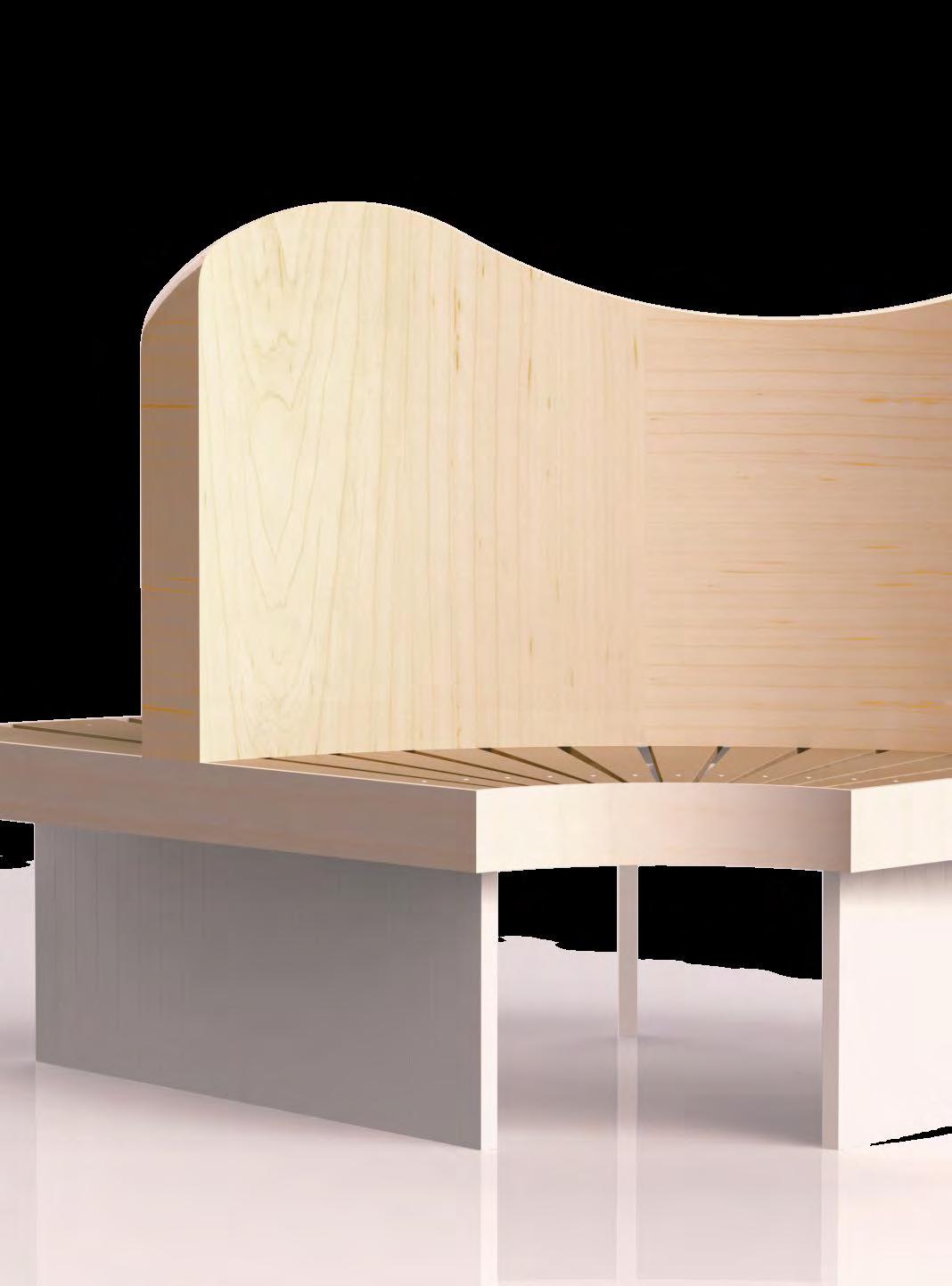 The seat of MillCur ve applied the principle of repetition which the plywood is repeated to create a rhythm. The back rest of MillCurve remain the flow and shape of coral shell. MillCurve keeps the natural colour of the the wood and also the colour from the subject matter which is off-white. The colours represent natural minimalism and simplicity.
