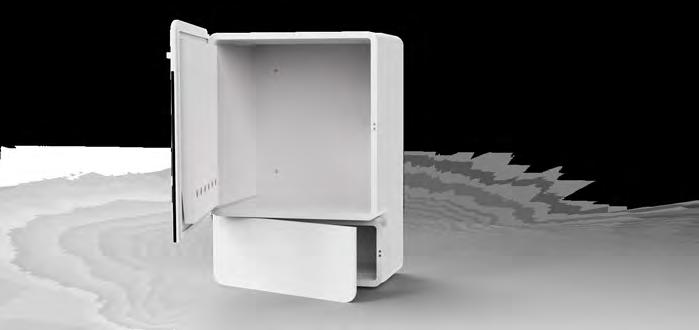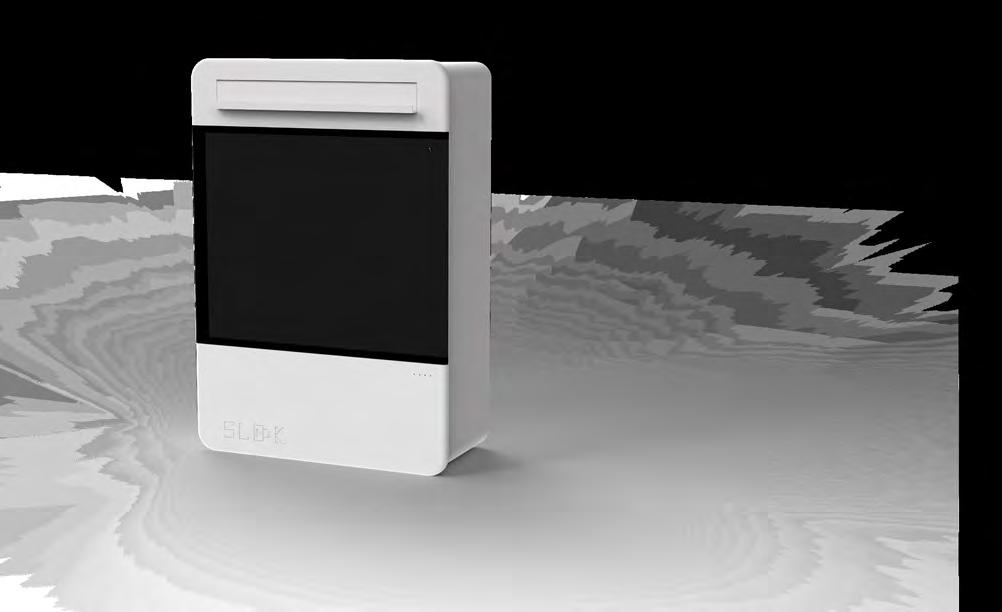 Off-matte-white and matte black are the proposed colour selection of SLOCK. The form of the smart parcel locker is cuboid with a rounded edge. There are two compartments which is upper large compartment and lower small compartment. The door of the upper compartment locker is equipped with an LCD screen with users are able to personalise the screen.