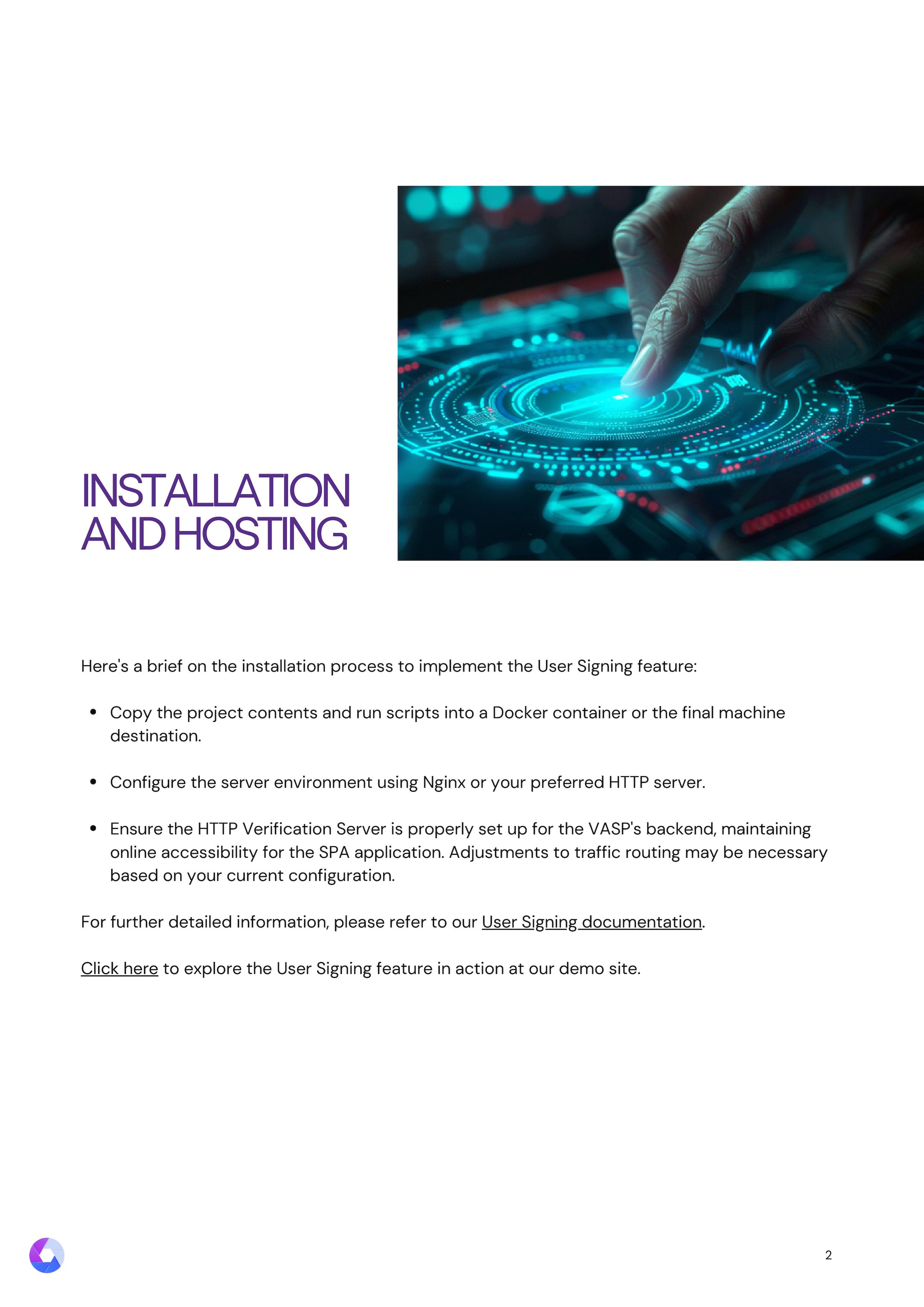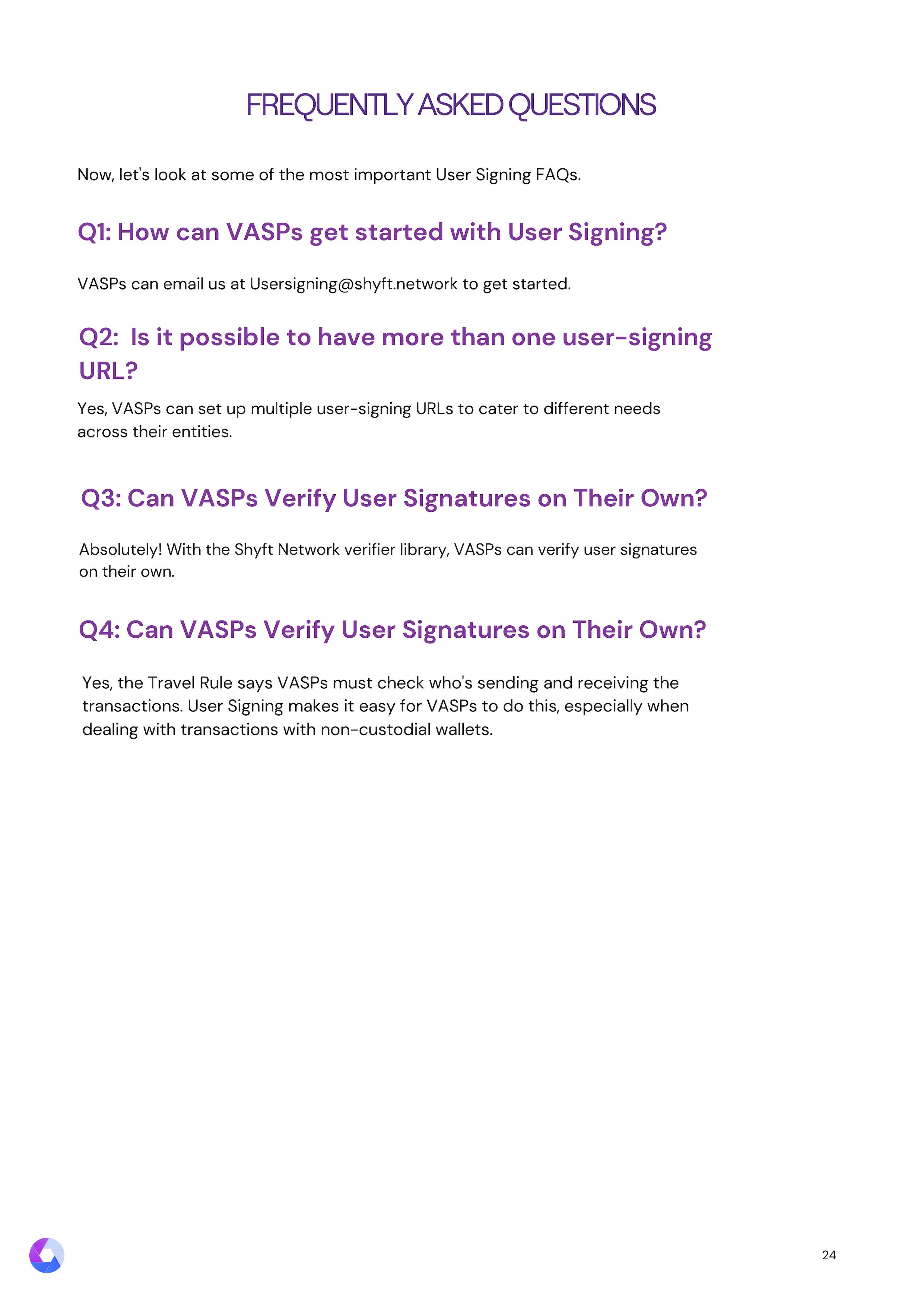 Shyft User Signing is a web application hosted by Shyft Network. It allows VASPs to obtain cryptographic proof of user ownership of a wallet address. This is useful for several reasons, but the primary use case is to help VASPs comply with the FATF Travel Rule.