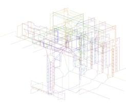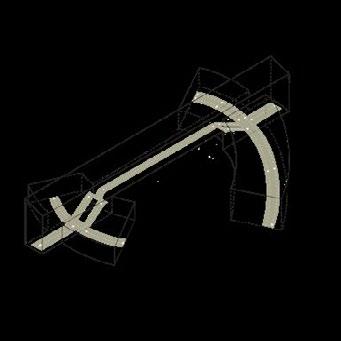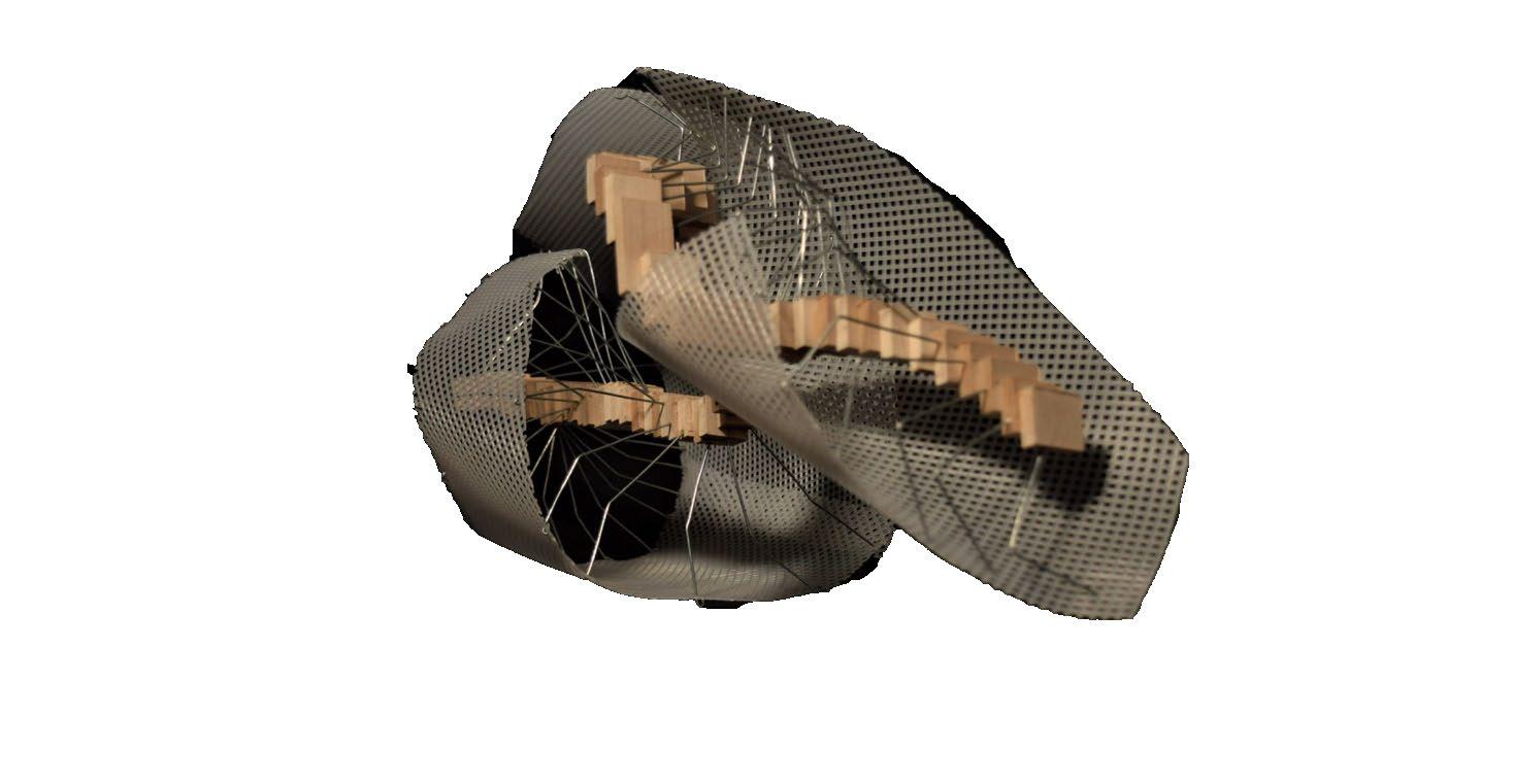 The premise of this project is to translate a physical human motion into an ambiguous interpretation to formulate an architectural spatial rendition. This process began with a comprehensive writing on the actions of the motion without explicitly stating what the motion is. Through images of the motion being performed, drawings were made to express the action with the presence of time, without drawing any identifiable or realistic bodily element (such as an arm or leg). Separating the motion from the body itself resulted in the creation of an abstract array of spiraling line segments, which were then projected three-dimensionally through the spatial embodiment model.