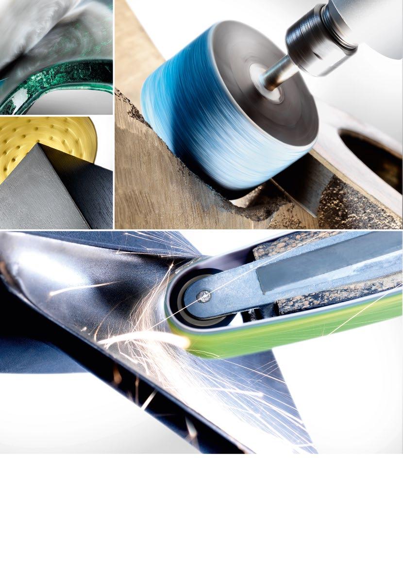 Para el tratamiento de superficies con la rectificadora en ángulo, la amoladora recta, la lengüeta lijadora, la lijadora orbital o a mano.