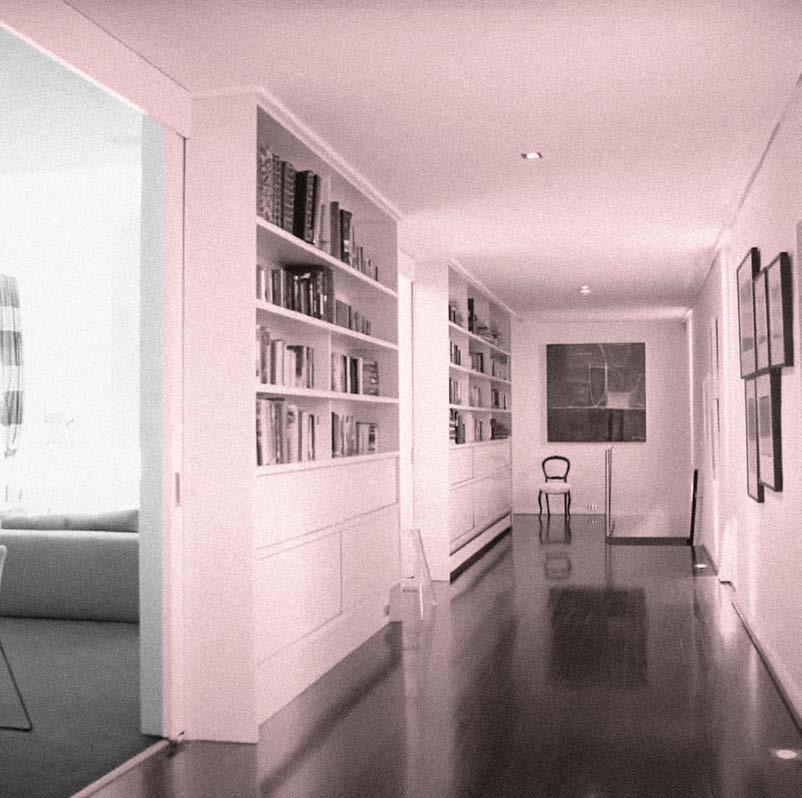 Gallery and domesticity exists in parallel, with a device of vertical separation.