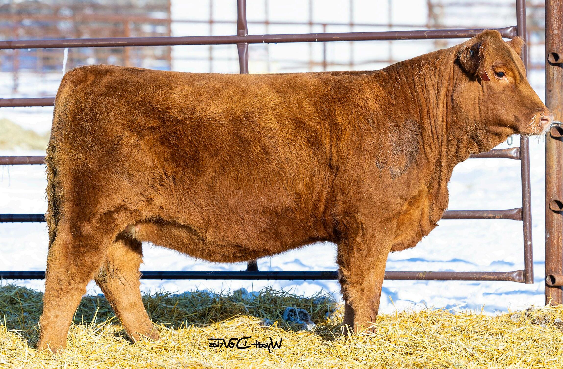 A red Paycheck daughter? Yep, there’s something you don’t see every day! I’m going to regret letting this one go. She’s one of the last Paycheck’s in the 2021 models, and we should really be keeping more daughters of the D25 cow as well. She doesn’t have the firepower to her EPD’s that some of the other heifers in the sale do, but I’ll tell you that mama is a Dam of Merit, and has nearly the same EPD profile. The proof is what they put on the ground! Speaking of which, this girl is bred a little different. She was exposed to PHG Hamilton H10, but he got hurt in pasture so we purchased JMR James 105J from Bar JR Gelbvieh in MT to finish his pasture. She sells pasture exposed to PHG Hamilton H10 from 5/28 to 6/14, and then JMR James 105J from 6/14 to 7/10. Ultrasound shows a red 99.9% bull calf due 3/23/2023. This date falls perfectly between Hamilton and James, but since Hamilton was hurt, I’m willing to bet she will be one of the only James bred females to leave