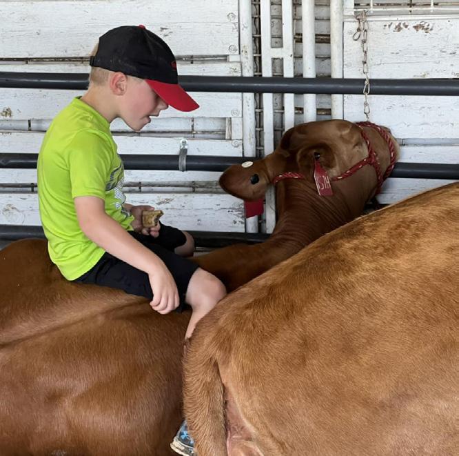 heifer in 2020 to Davidson Gelbvieh in Canada. This is a cow family that is developing a reputation around here as being broody, big middled, and easy keeping. Miss Ali combines the best of both worlds - powerful, deep, yet feminine and eye catching when she comes at you. Her paperwork is all in order as well, with EPD’s all above board. So what is she? A show heifer, or a potential donor female? Take her home and let us know, I think she could work both ways! MCCA CORNHUSKER RED 524C SIRE: PHG HAMILTON H10 CRAN FAYE F822 RWG TRACTION 7412 MCCA ZIVA Z24 CRAN CRANVIEW SANDHILLS D58 ET CRAN CRAN Y133 DVE DAVIDSON HOWARD 3E DAM: PHG MISS ALI H26 PHG MISS ALI D25 DVE DVE DAVIDSON THE GIFT 110B DVE DAVIDSON MS SECRET 44B RWG YIKES 1512 LJSA PRINCESS ALI 522R K01 | Registration #: AMGV1539589 | 2/14/2022 | Open Heifer | PB 94% Gelbvieh PHG MISS ALI K01 LOT 1 — PHG MISS ALI K01 LOT 1 CE 15 BW 0.5 WW 78 YW 113 MK 21 TM 60 CEM 7 YG -0.08 CW 43 REA 0.54 MB 0.02 FPI 75.71 Birth Wt 72 Adj WW 716
