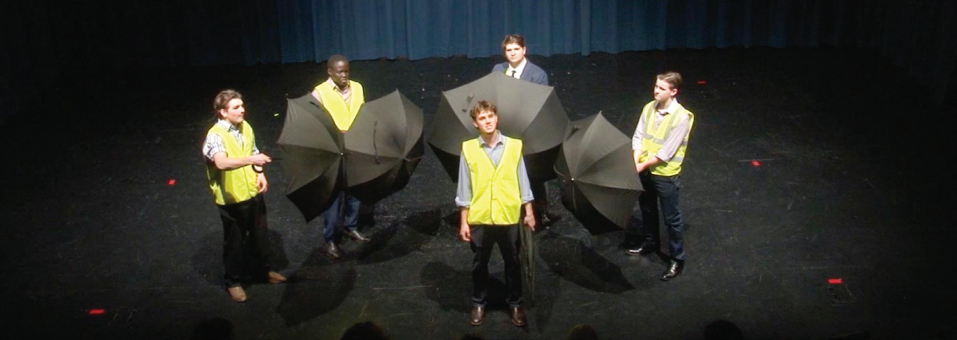 All look to Zak for the final line in unison, Zak does not speak - first looking at his feet then looking up.