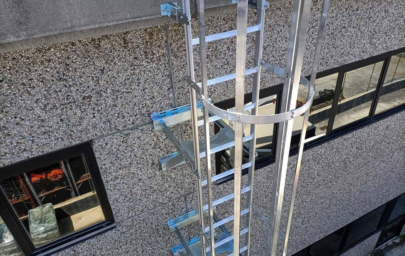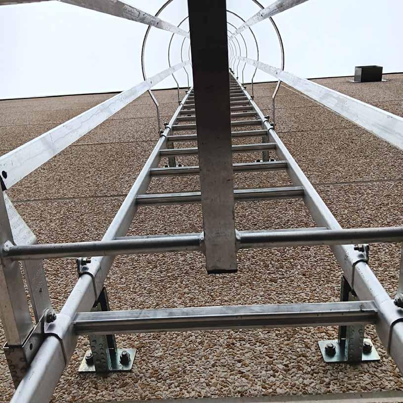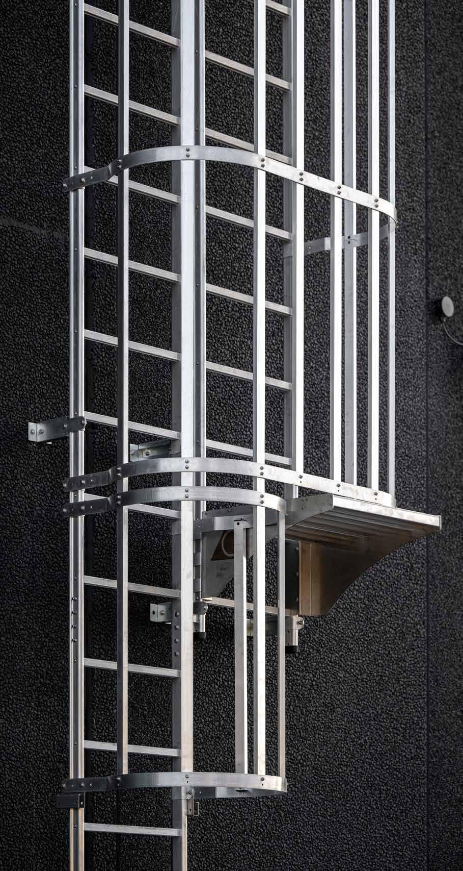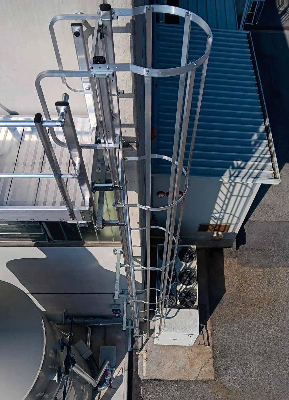 La scala a gabbia SDSTEP è progettata per un’installazione semplice e veloce in situazioni con dislivelli, come tetti o aree di lavoro sopraelevate. È realizzata in alluminio 6060 T6, materiale leggero e resistente agli agenti atmosferici. Ogni componente è progettato secondo le normative vigenti per garantire resistenza e rigidità.