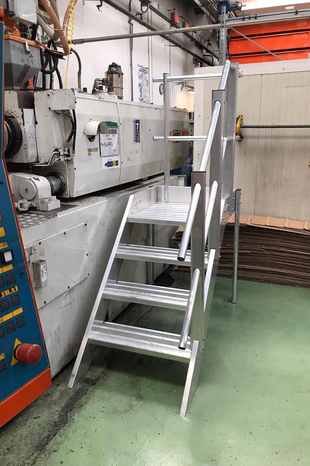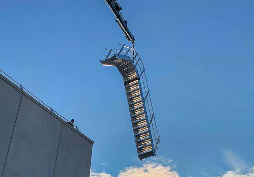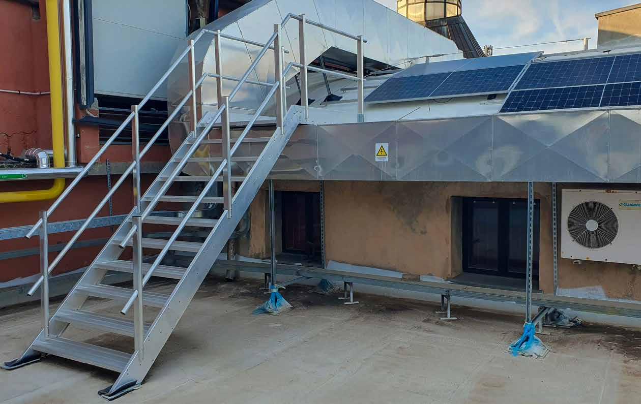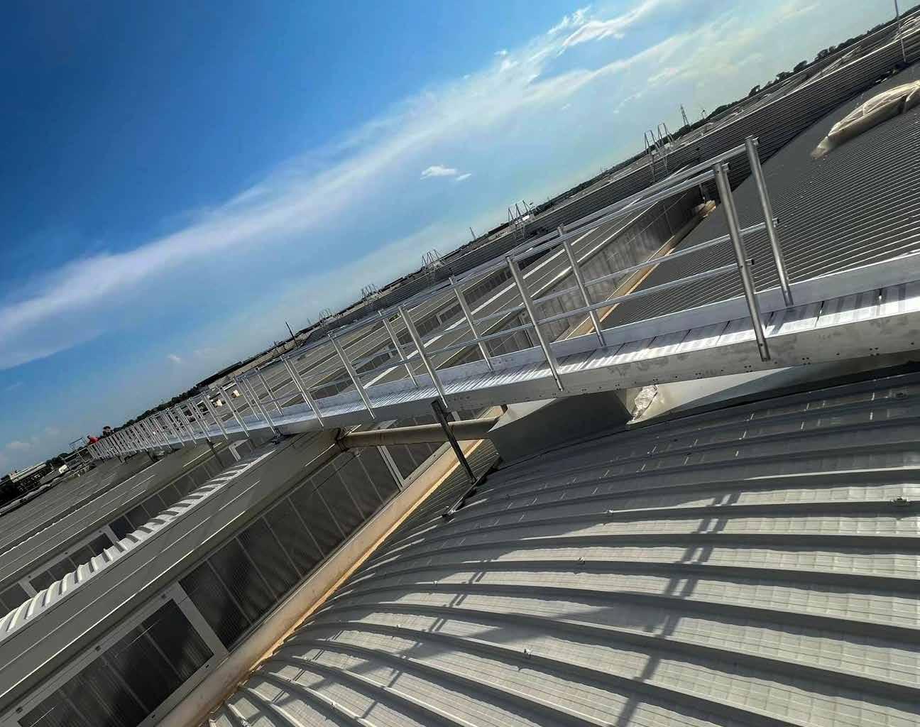 Le passerelle possono essere pre-assemblate o montate in loco, adattandosi a diverse geometrie e superfici di installazione. Tutti i componenti sono disponibili a magazzino per una rapida evasione degli ordini.