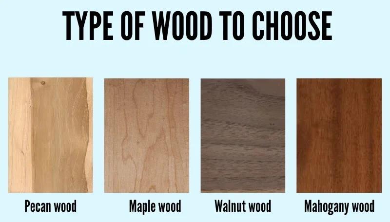 In my experience, choosing the right wood is important to ensure durability and long-term use. I recommend woods like pecans, maple, walnut, or mahogany.