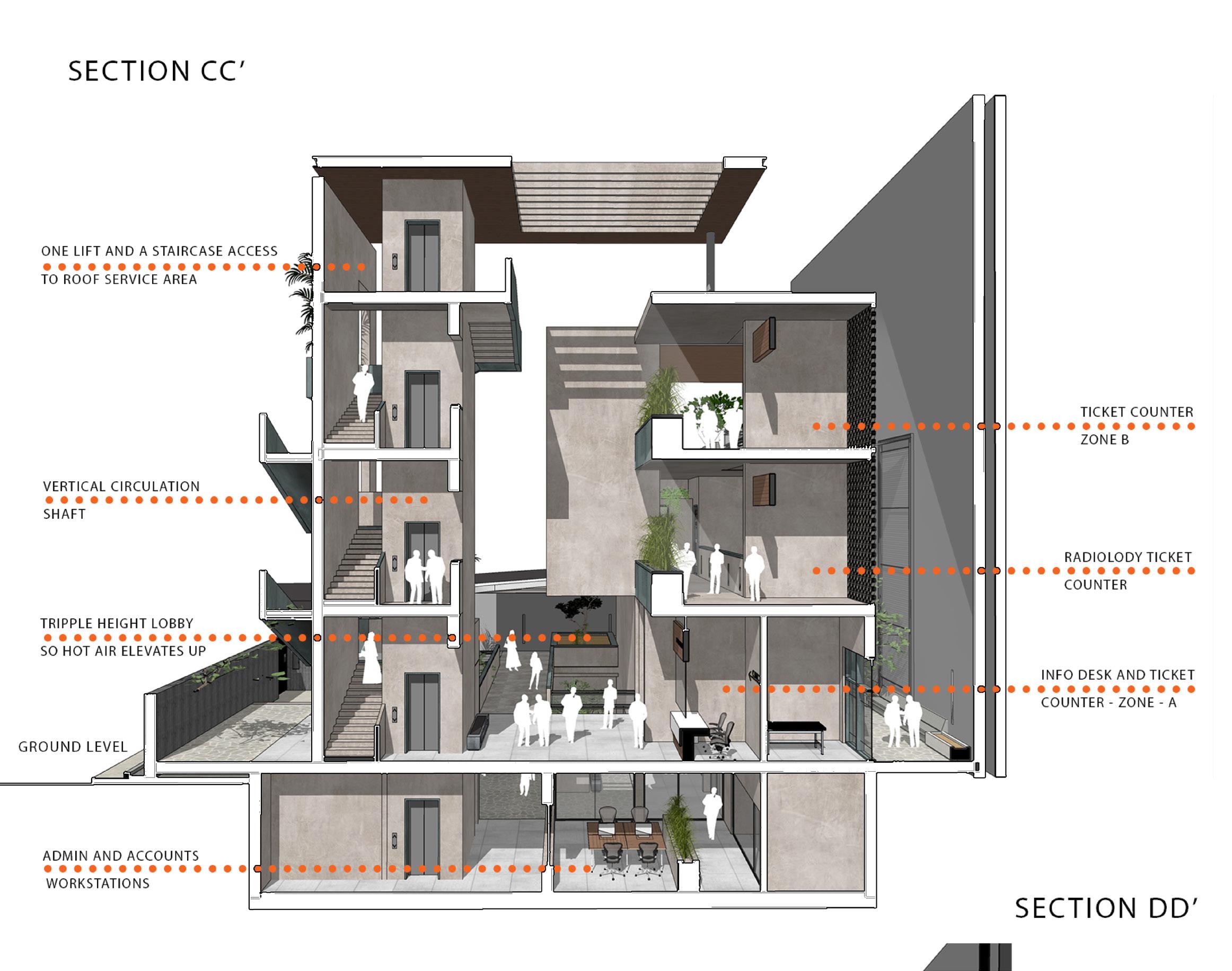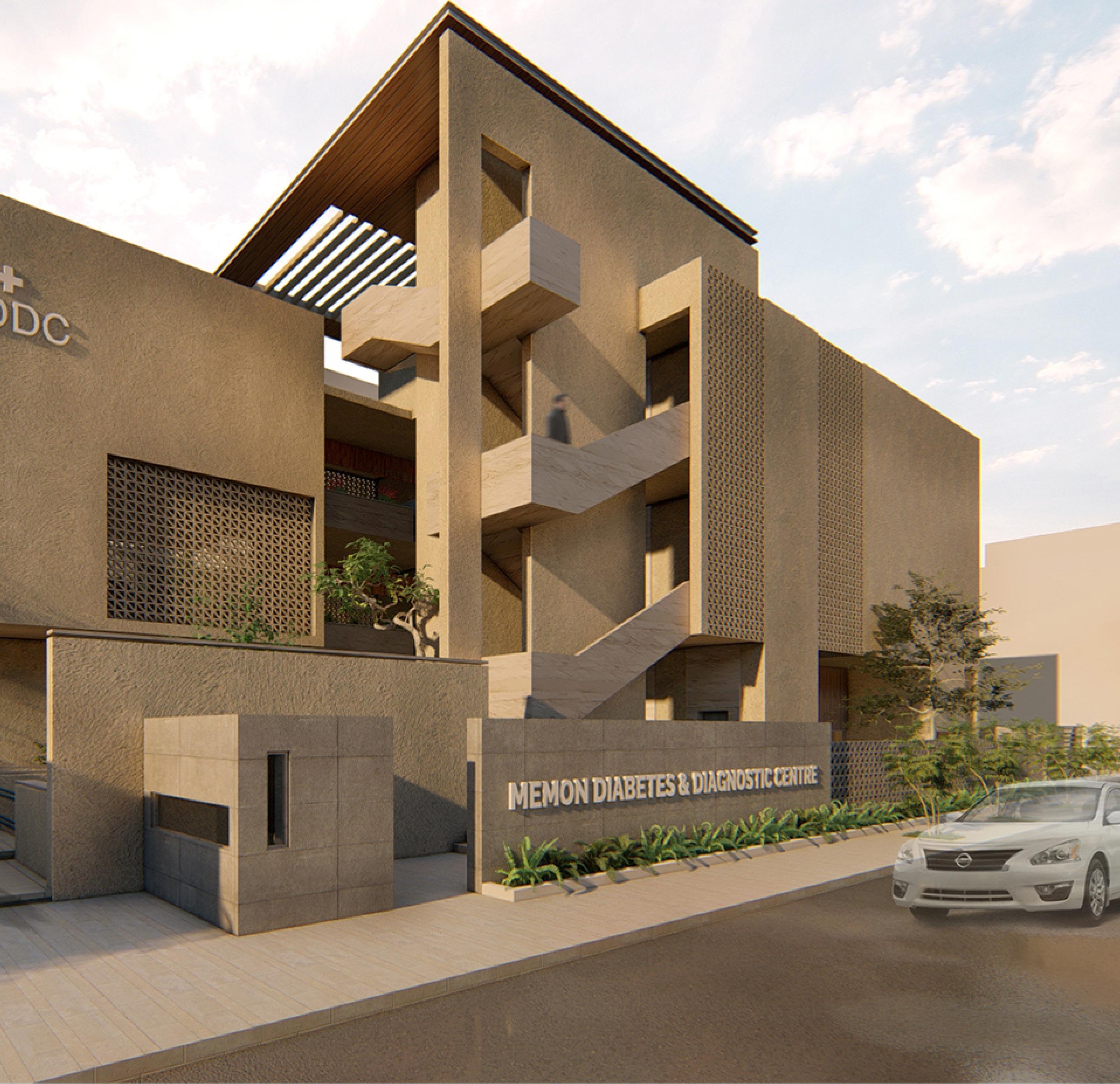 The project is a charity medical diagnosis center in the heart of Karachi. With a very limited construction budget, one of the primary design drivers was the incorporation of natural ventilation principles. To achieve comfortable indoor temperatures in Karachi’s hot, arid climate, the design features extensive use of screens, indoor and outdoor trees, and specific massing placement strategies. These elements work together to create naturally comfortable spaces..