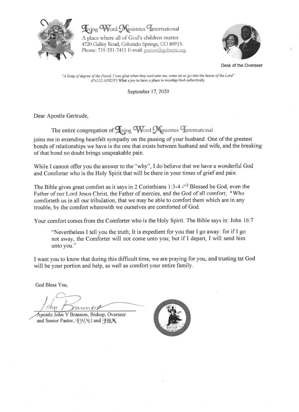 In obedience to God he started a Ministry called, Hope House International Ministries in the former home of his father-in-law and mother-in-law. At the time of his passing he was building a sanctuary and a distribution center for the Lord which will be completed by Pastor Gertrude and the followers and friends of the Ministry.